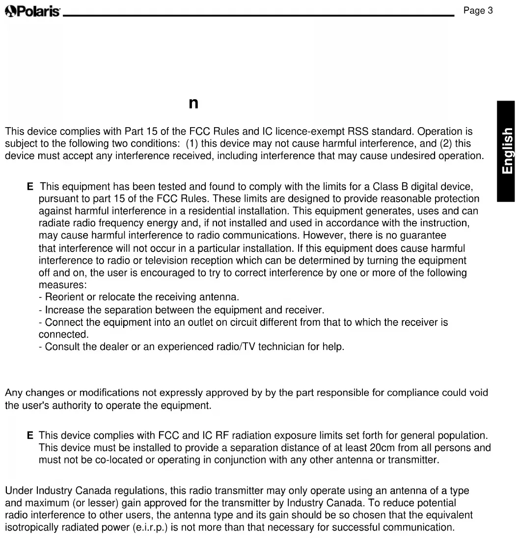 (9450 Sport/P945 and 9550 Sport/P955) ......... 23Page 3 English F C C S t a t e m e nt This device complies with Part 15 of the FCC Rules and IC licence-exempt RSS standard. Operation is subject to the following two conditions: (1) this device may not cause harmful interference, and (2) this device must accept any interference received, including interference that may cause undesired operation. N O T E: This equipment has been tested and found to comply with the limits for a Class B digital device, pursuant to part 15 of the FCC Rules. These limits are designed to provide reasonable protection against harmful interference in a residential installation. This equipment generates, uses and can radiate radio frequency energy and, if not installed and used in accordance with the instruction, may cause harmful interference to radio communications. However, there is no guarantee that interference will not occur in a particular installation. If this equipment does cause harmful interference to radio or television reception which can be determined by turning the equipment off and on, the user is encouraged to try to correct interference by one or more of the following measures: - Reorient or relocate the receiving antenna. - Increase the separation between the equipment and receiver. - Connect the equipment into an outlet on circuit different from that to which the receiver is connected. - Consult the dealer or an experienced radio/TV technician for help. C A U T I O N Any changes or modications not expressly approved by by the part responsible for compliance could void the user's authority to operate the equipment. N O T E: This device complies with FCC and IC RF radiation exposure limits set forth for general population. This device must be installed to provide a separation distance of at least 20cm from all persons and must not be co-located or operating in conjunction with any other antenna or transmitter. Under Industry Canada regulations, this radio transmitter may only operate using an antenna of a type and maximum (or lesser) gain approved for the transmitter by Industry Canada. To reduce potential radio interference to other users, the antenna type and its gain should be so chosen that the equivalent isotropically radiated power (e.i.r.p.) is not more than that necessary for successful communication.Page 4 English W A R N I N G F a ilu r e t o c o m p ly w it h t he f o llo w ing w a r nings c a n r e su lt in p e r m a ne nt inj u r y , e le c t r o c u t io n o r d e a t h. P R EV EN T EL EC T R I C A L S H O C KTo reduce risk of electrical shock: