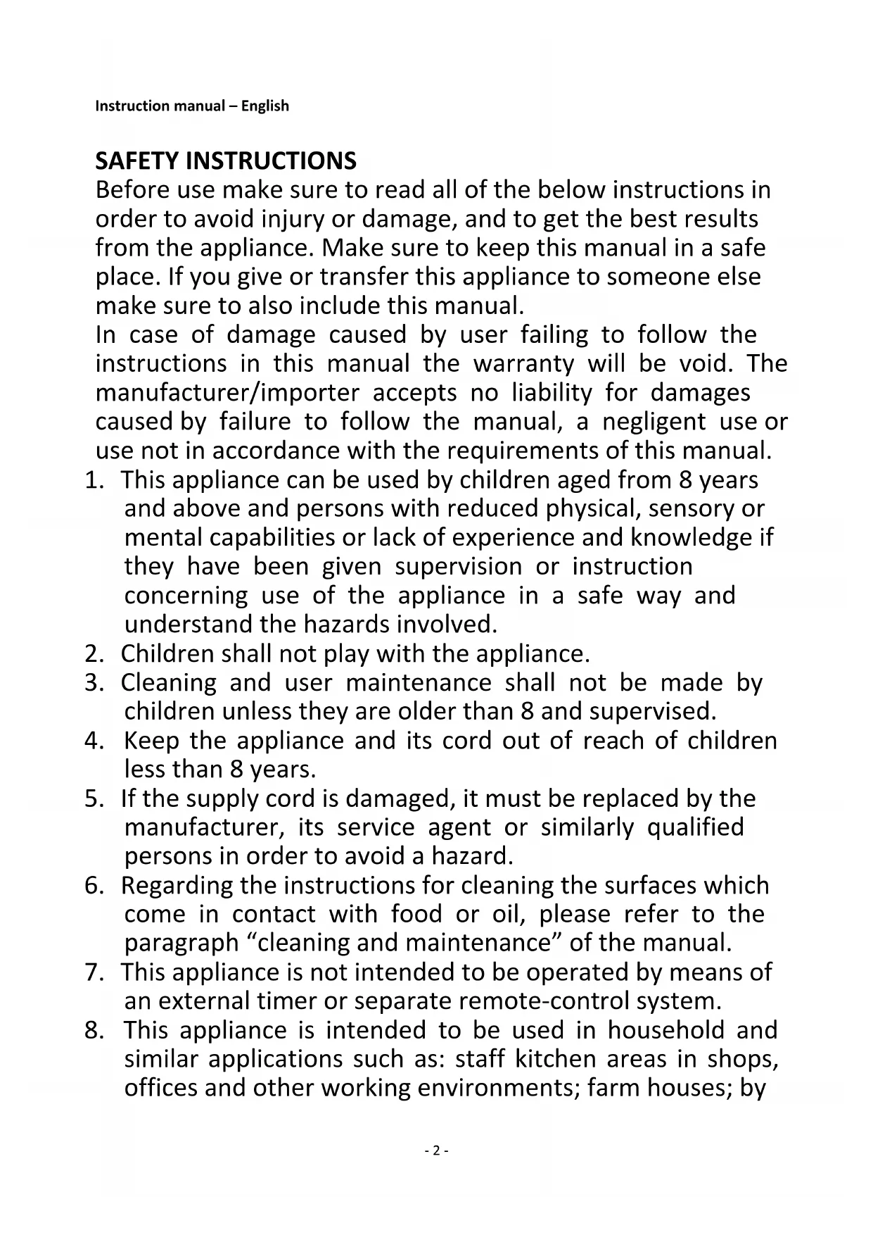 2. Children shall not play with the appliance.