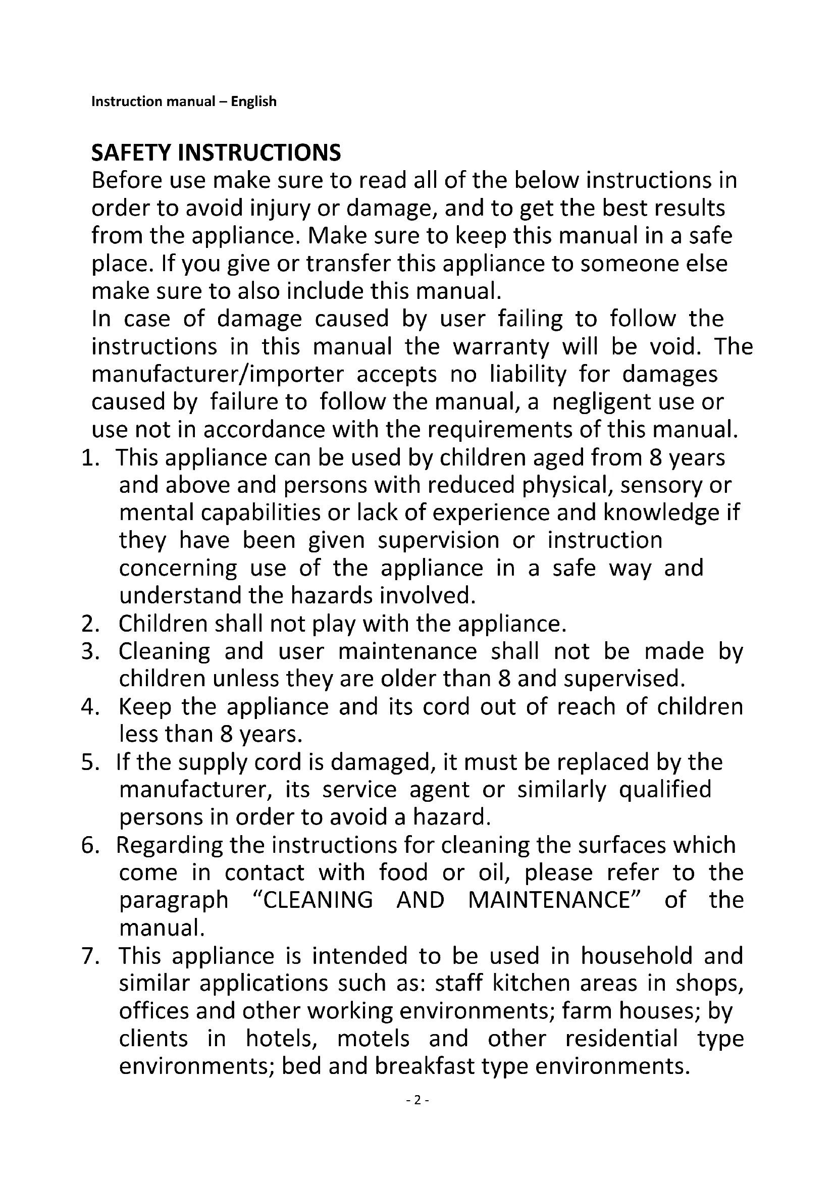 7. This appliance is intended to be used in household and
