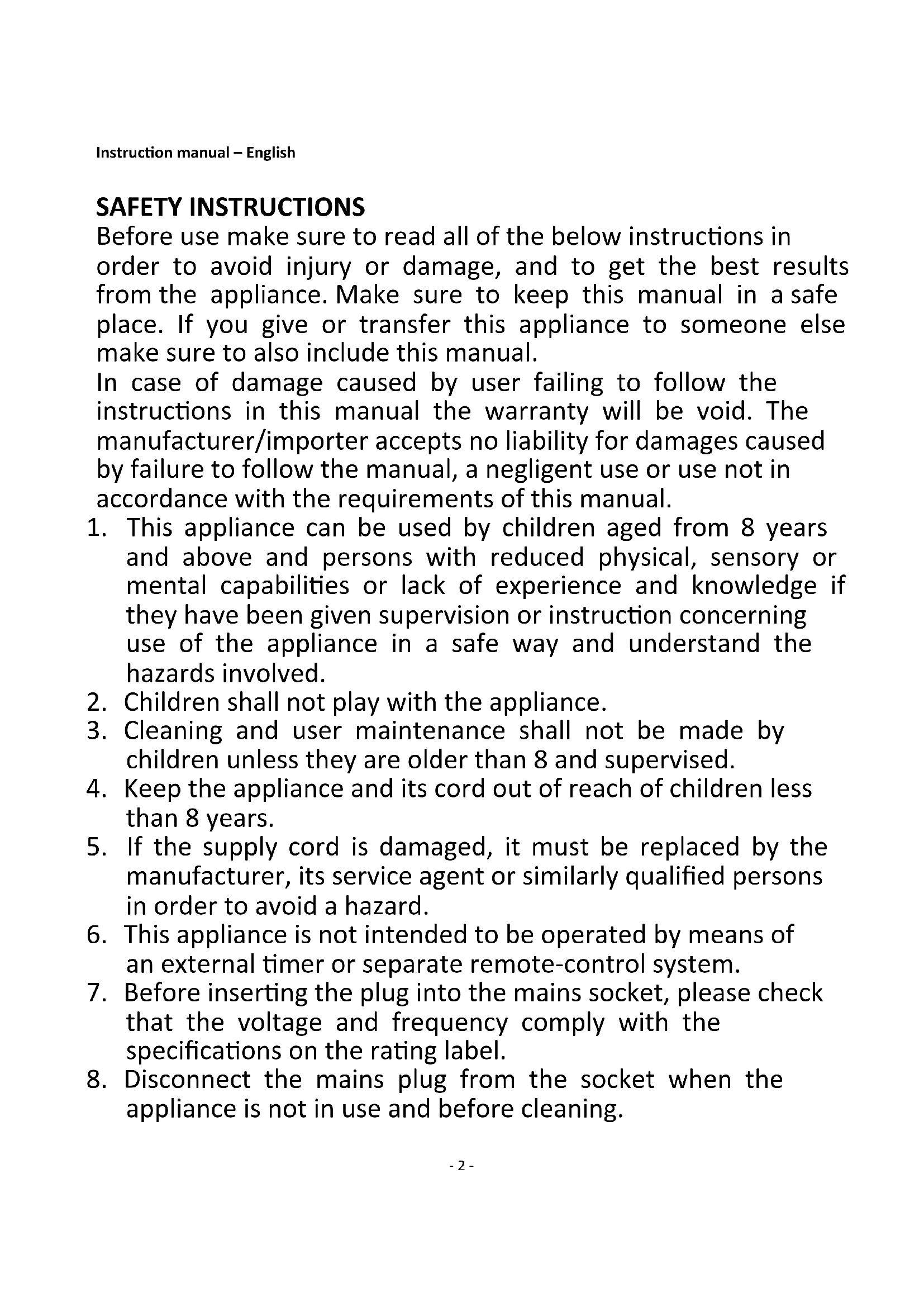2. Children shall not play with the appliance.