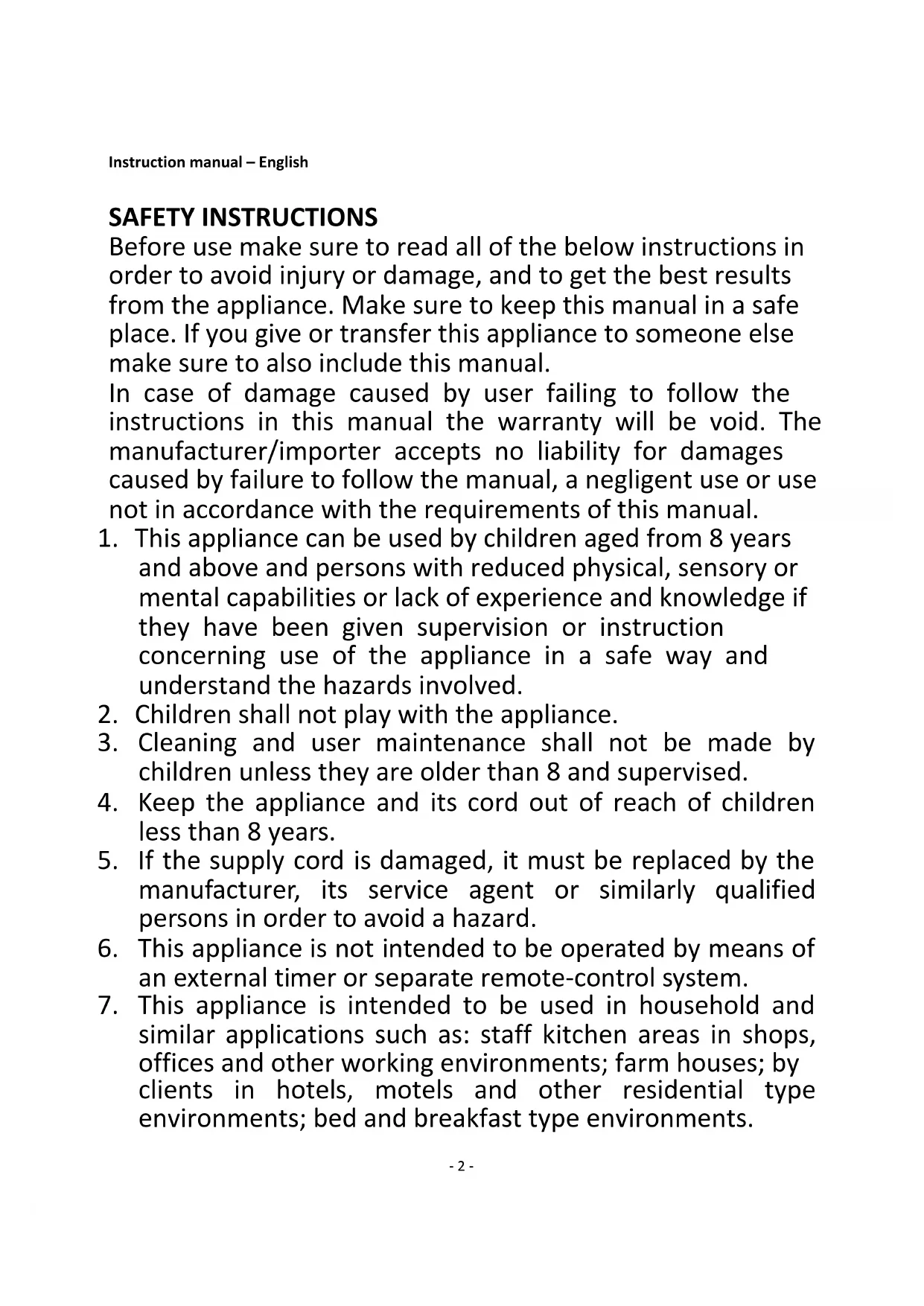 2. Children shall not play with the appliance.