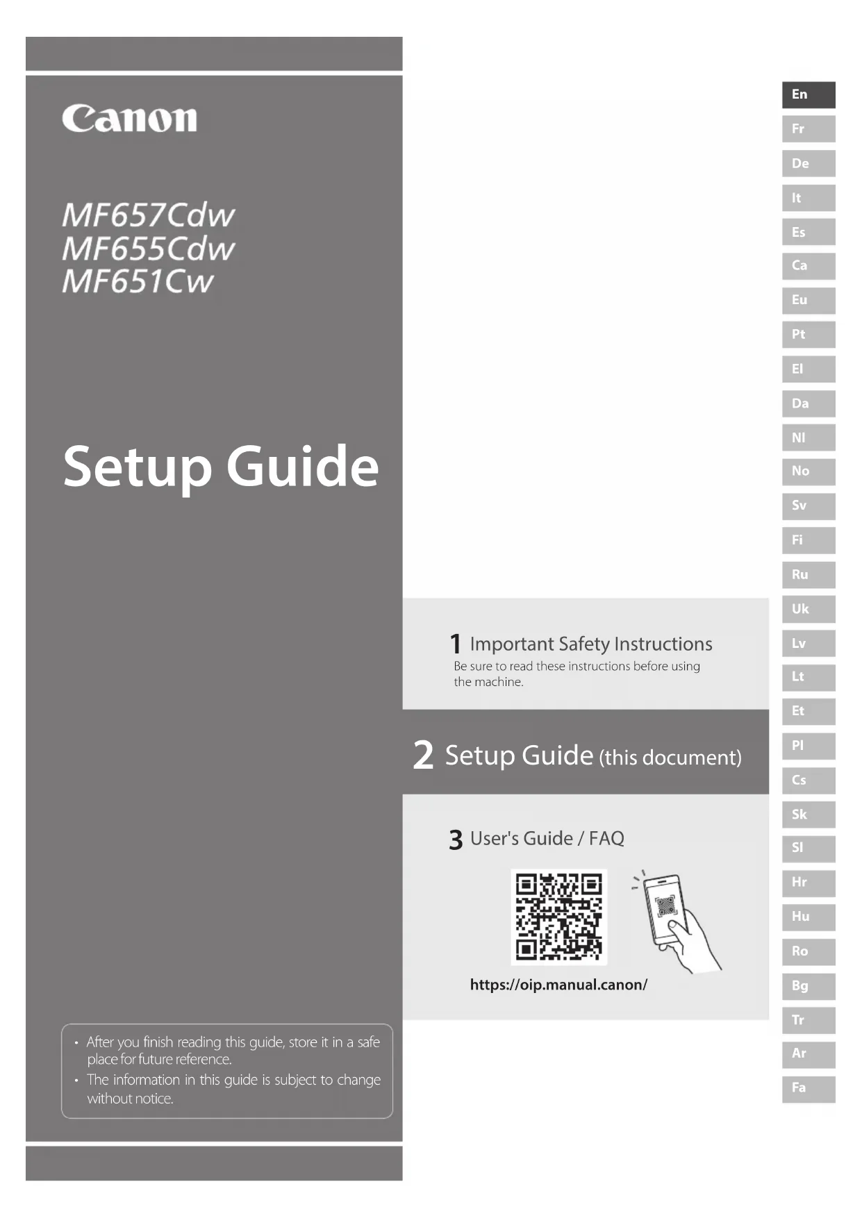 - After you finish reading this guide, store it in a safe place for future reference.• The information in this guide is subject to change without notice.https://oip.manual.canon/ Important Safety Instructions Be sure to read these instructions before using the machine. User's Guide / FAQ