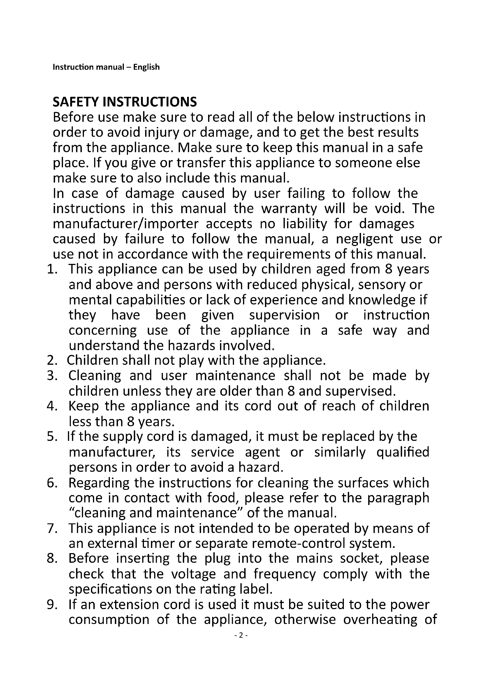 2. Children shall not play with the appliance.