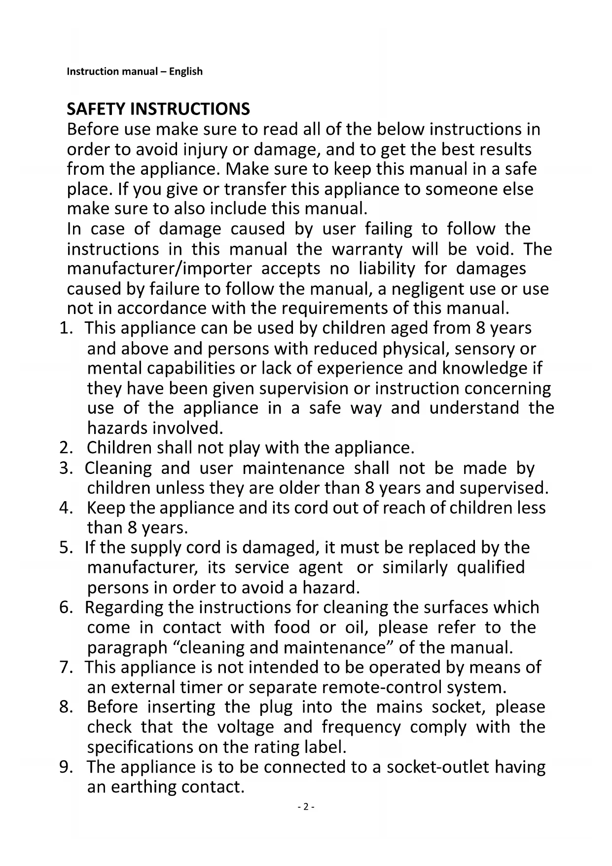 2. Children shall not play with the appliance.