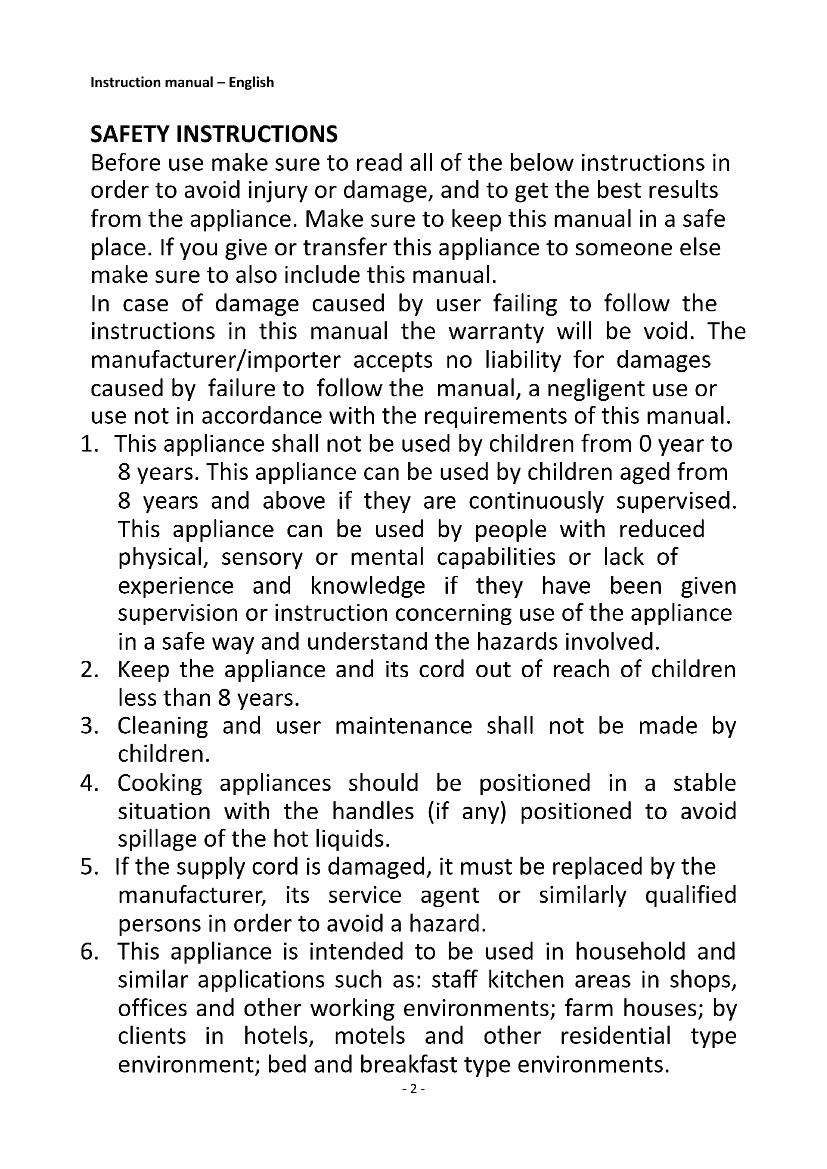 6. This appliance is intended to be used in household and