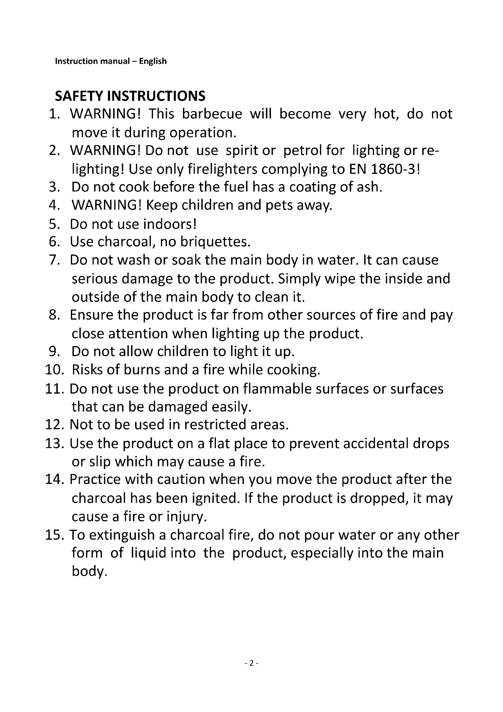 1. WARNING! This barbecue will become very hot, do not