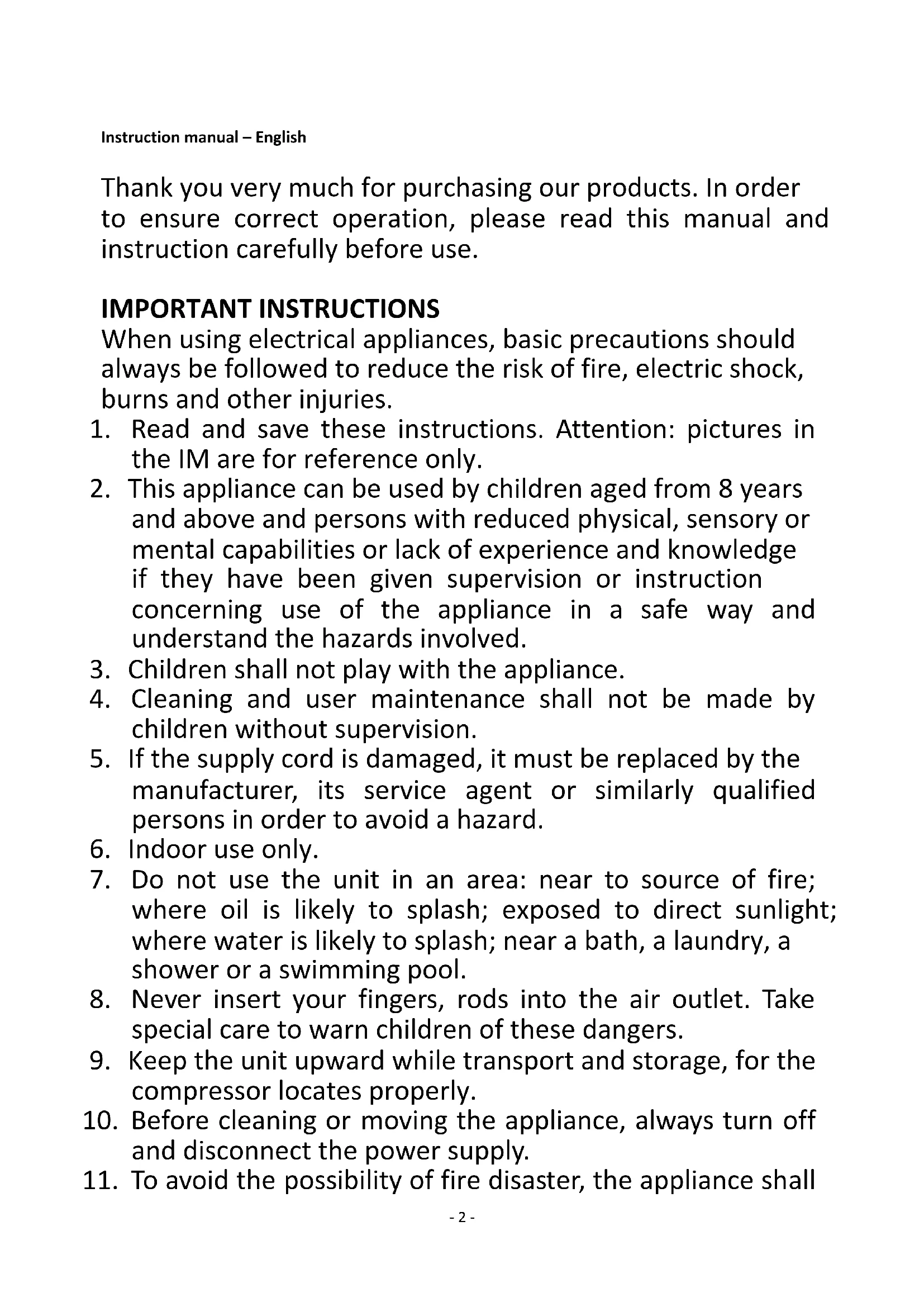 11. To avoid the possibility of fire disaster, the appliance shall- 3 -