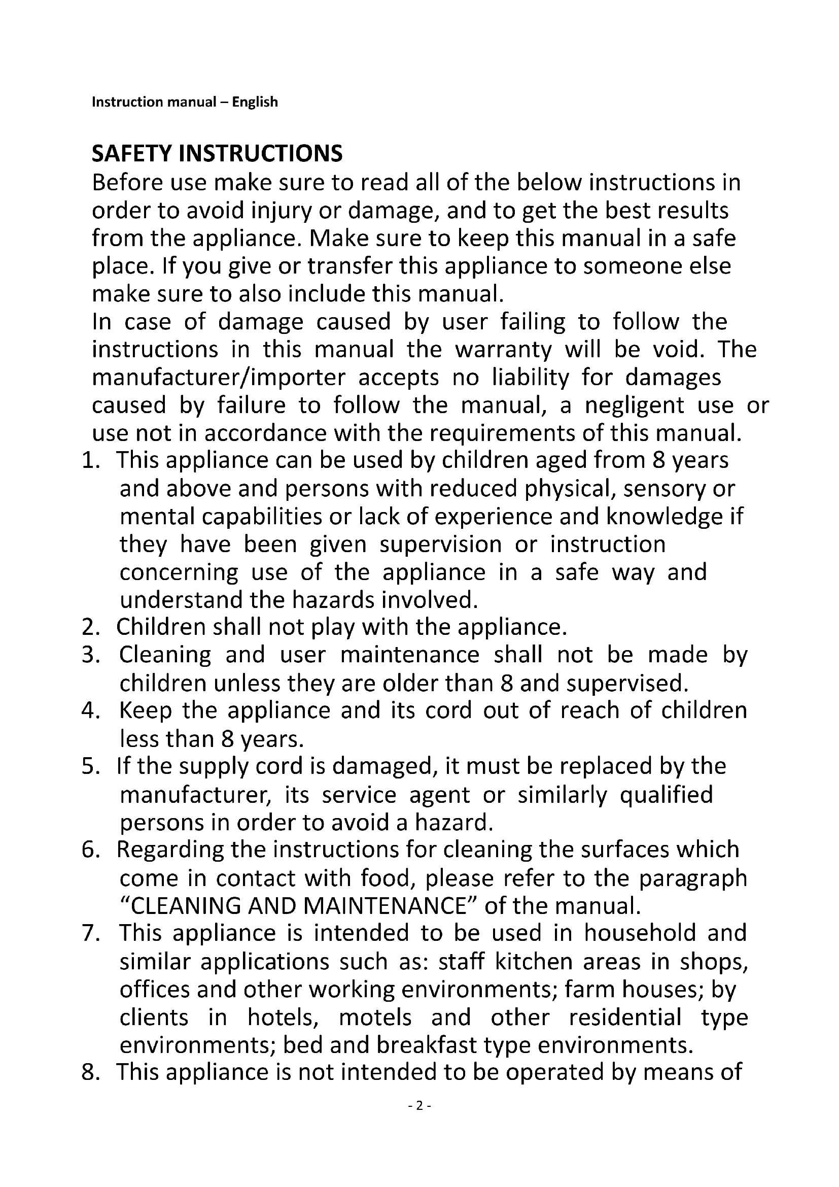 8. This appliance is not intended to be operated by means of- 3 -