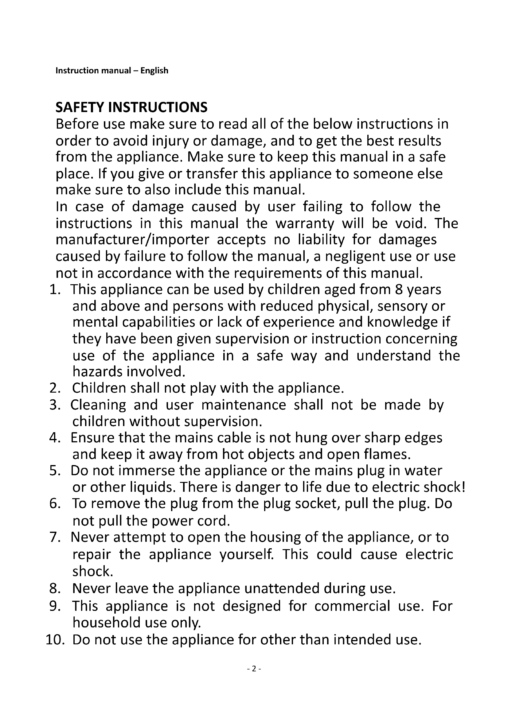 10. Do not use the appliance for other than intended use.- 3 -