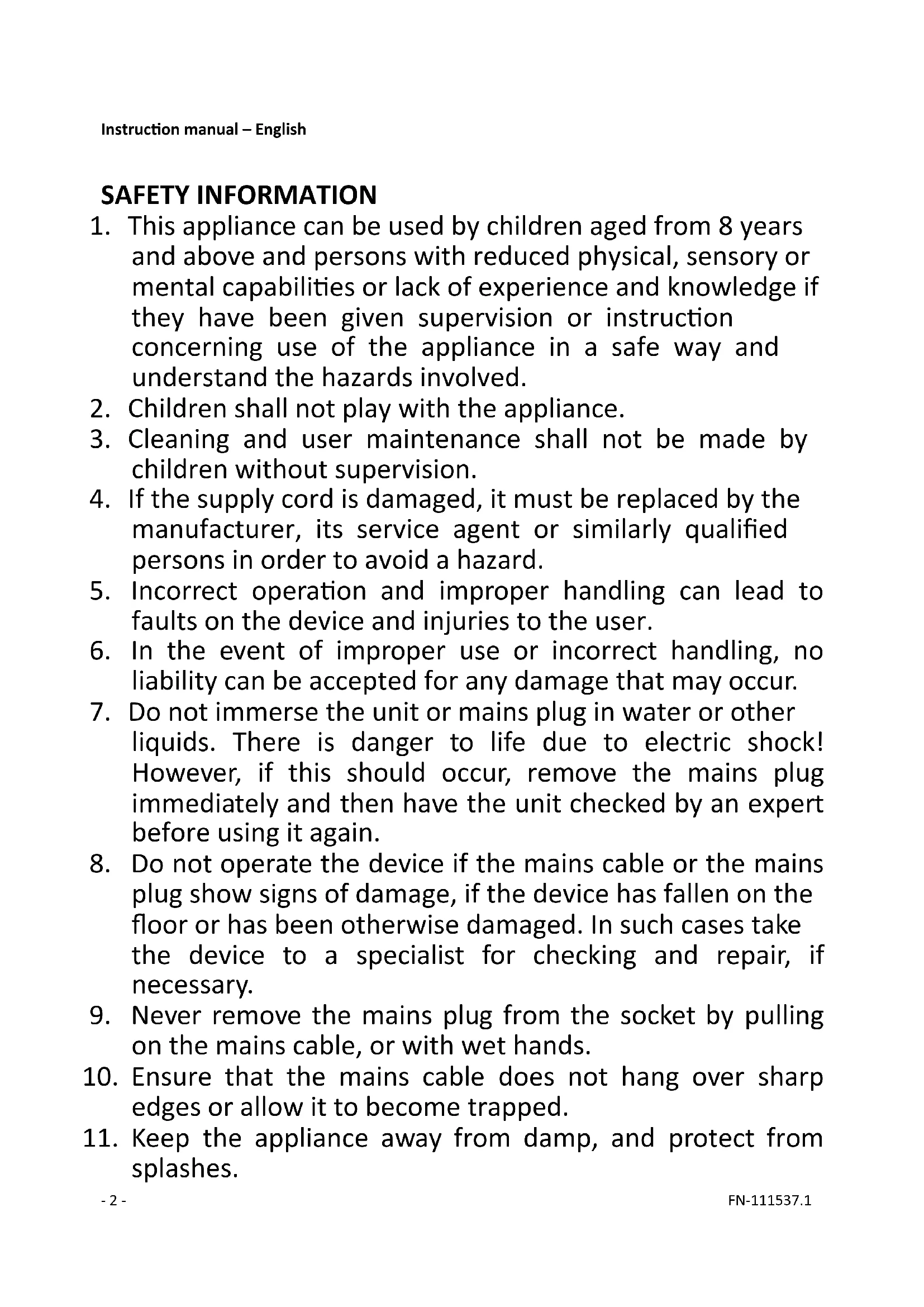 Download the instructions for your Fan in PDF format for free! Find your manual FN111537.1 - Emerio and take your electronic device back in hand. On this page are published all the documents necessary for the use of your device. FN111537.1 by Emerio.