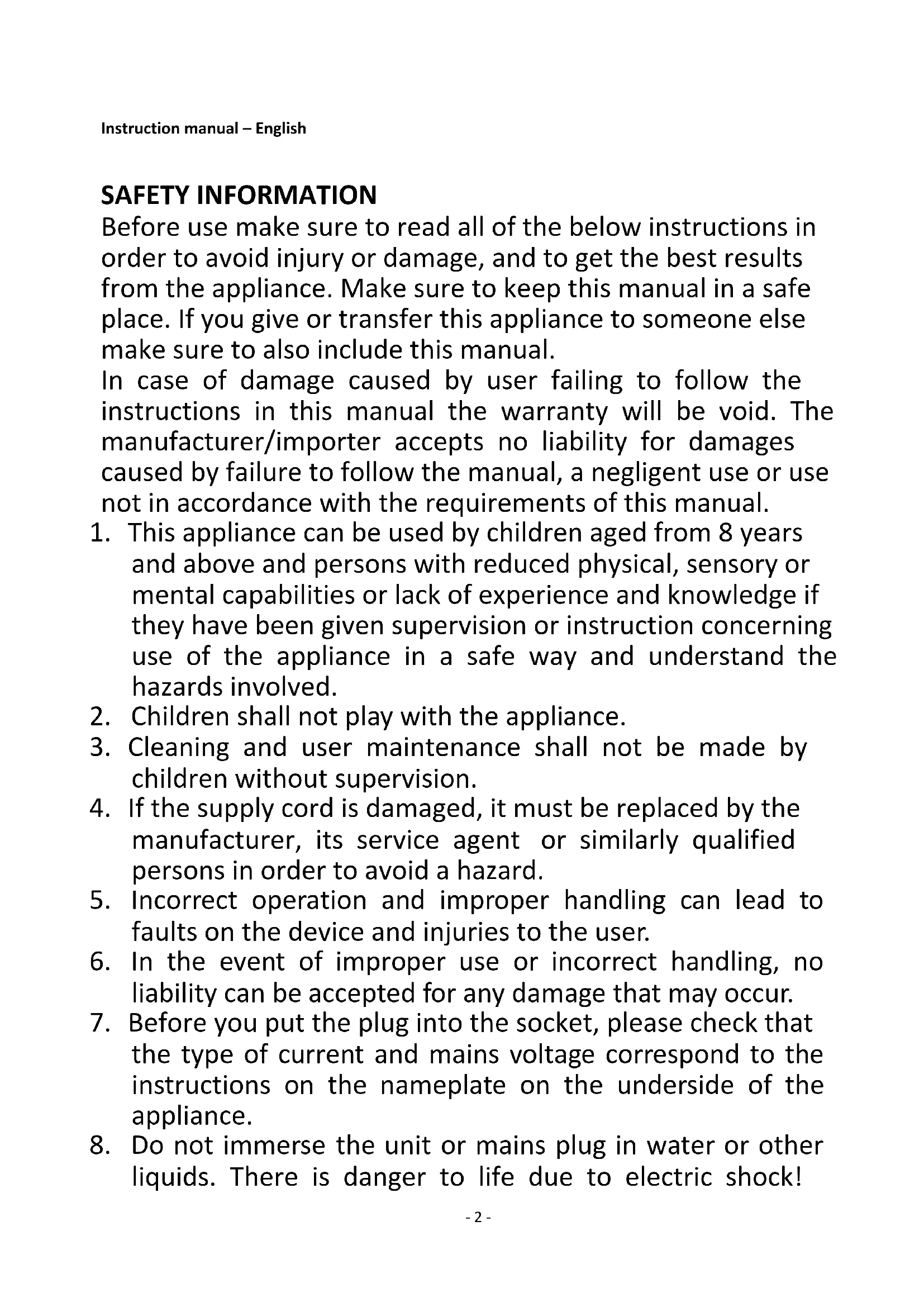 1. This appliance can be used by children aged from 8 years