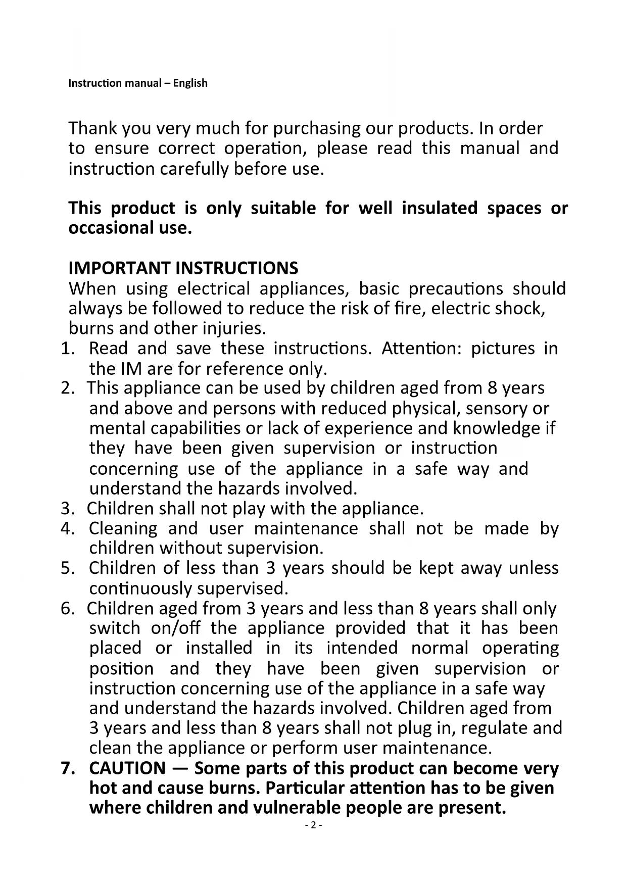 26. Use the appliance in a well-ventilated area, this heater is