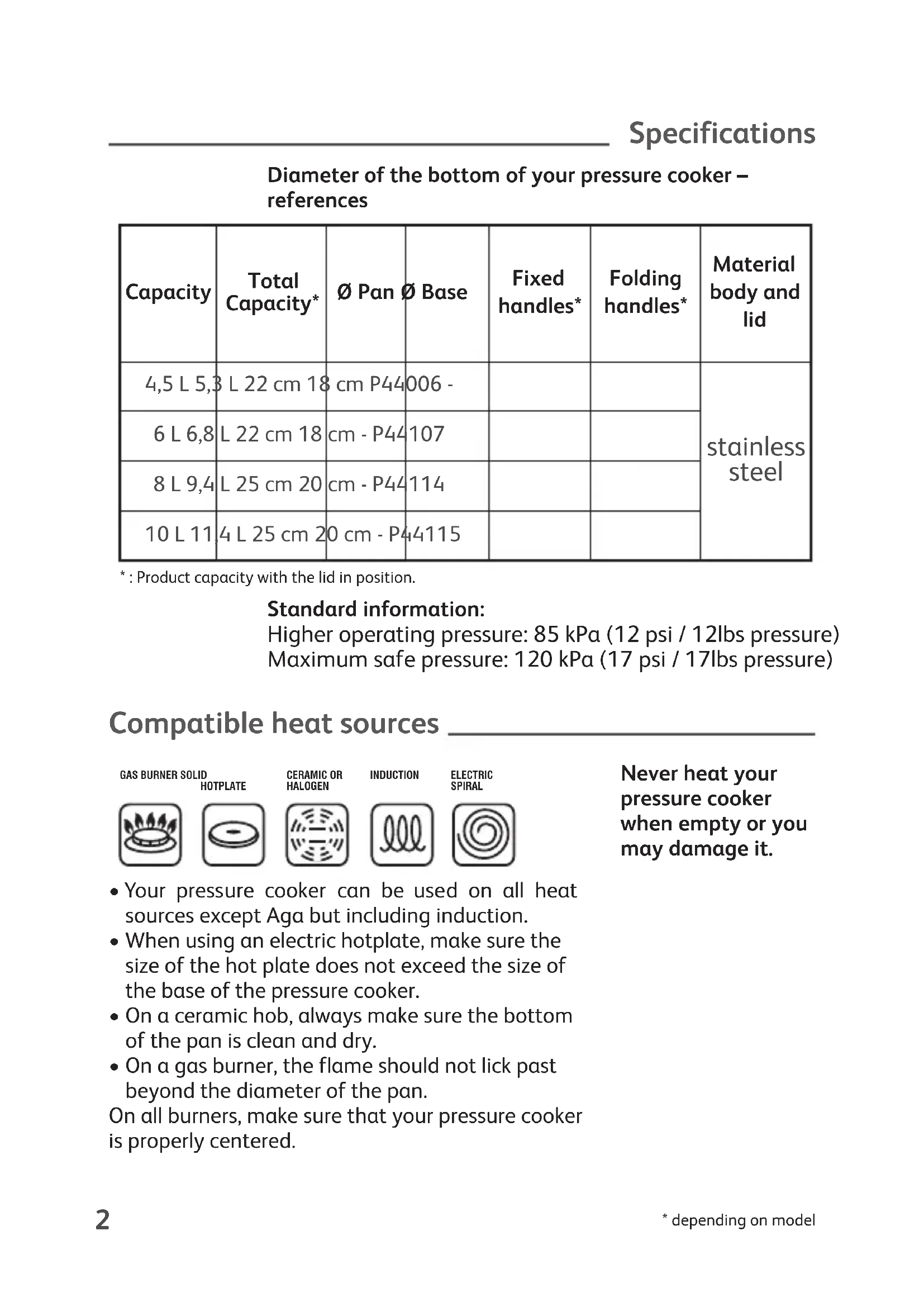 - Your pressure cooker can be used on all heat sources except Aga but including induction.