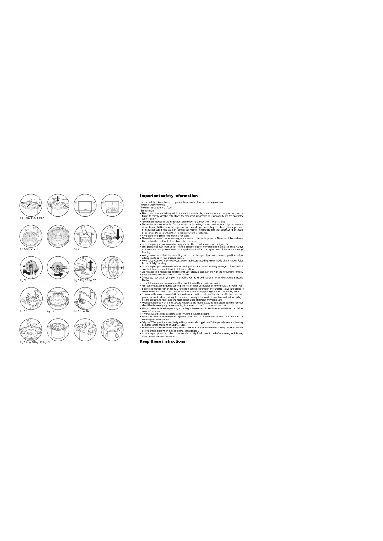 EN p 1 - 15 FR p 16 - 30 EL p 31 - 45 TR p 46 - 61 FA p 77 - 62 AR p 92 - 78 TE_CLIPSO-ONE_4137343_IFU-TEFAL-CLIPSO ONE 05/11/12 10:15 PageC1Important safety information For your safety, this appliance complies with applicable standards and regulations: - Pressure vessel directive - Materials in contact with food - Environment