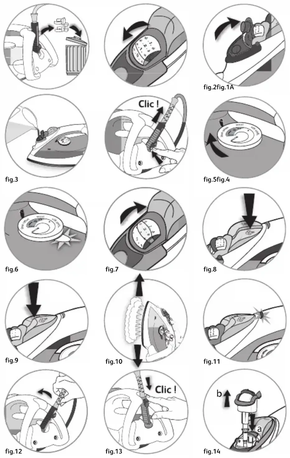 - Repeatedly press the Burst of Steam button ( fig.8) and continuously move the iron over the fabric ( fig.10).