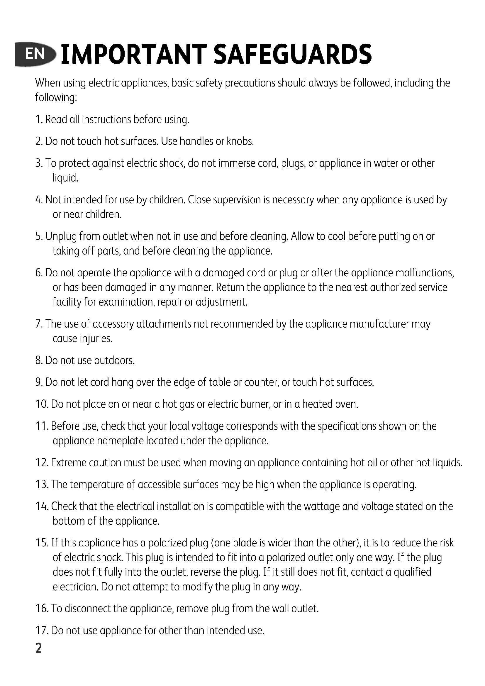 Tfal-SIMPLECURVGRIL-NC00118547-2 20/06/13 09:15 Page12 IMPORTANT SAFEGUARDS When using electric appliances, basic safety precautions should always be followed, including the following:
