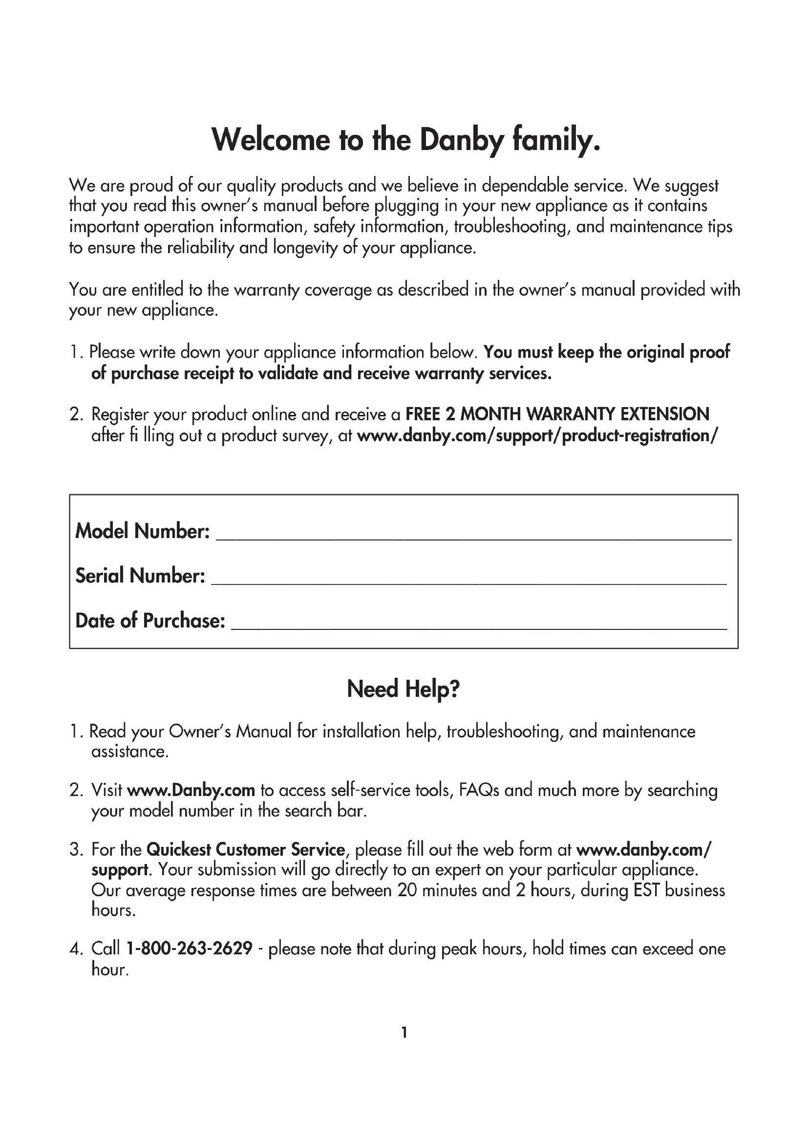 3. For the Quickest Customer Service, please fi ll out the web form at www.danby.com/