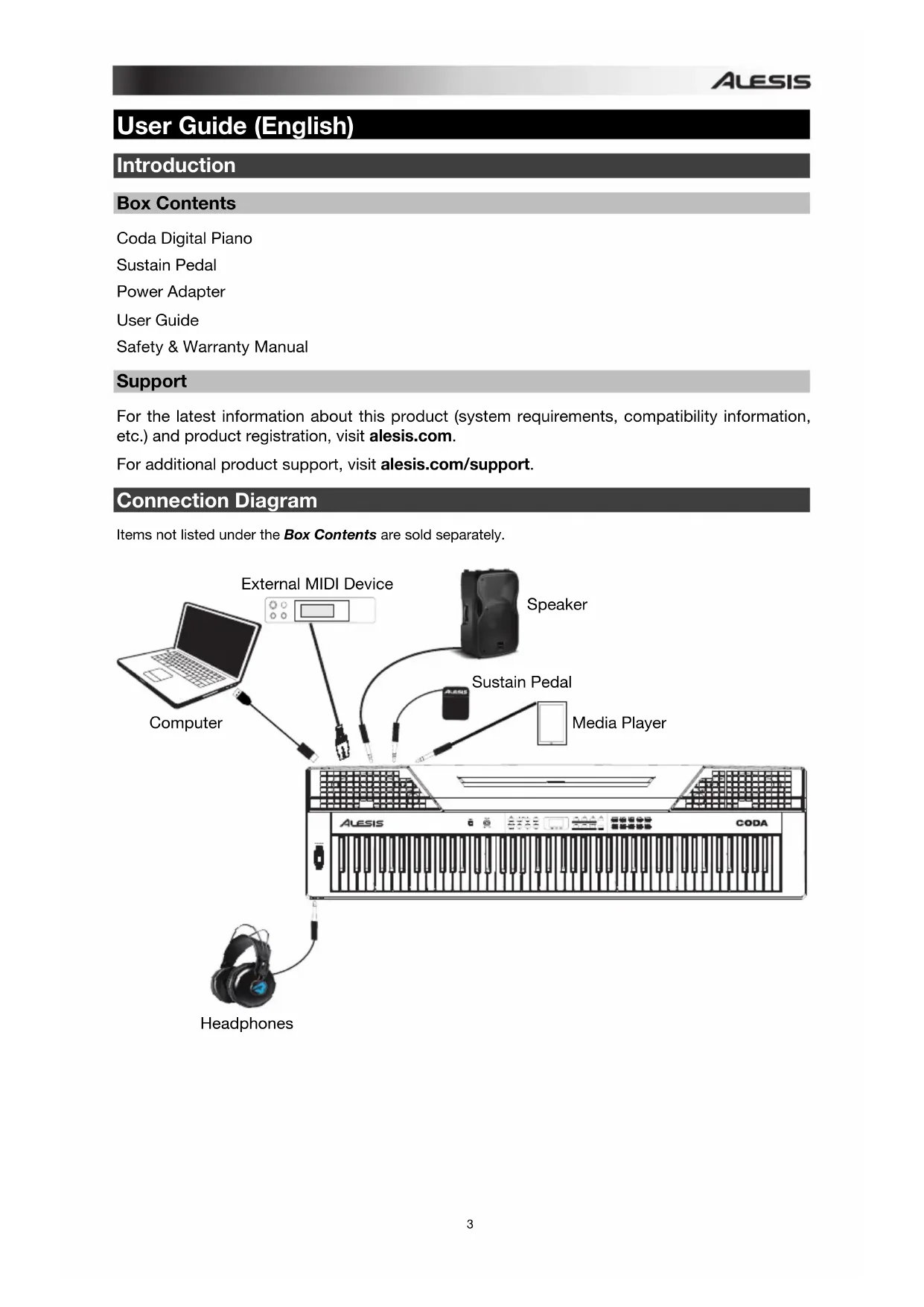 Download the instructions for your Piano in PDF format for free! Find your manual Coda - ALESIS and take your electronic device back in hand. On this page are published all the documents necessary for the use of your device. Coda by ALESIS.
