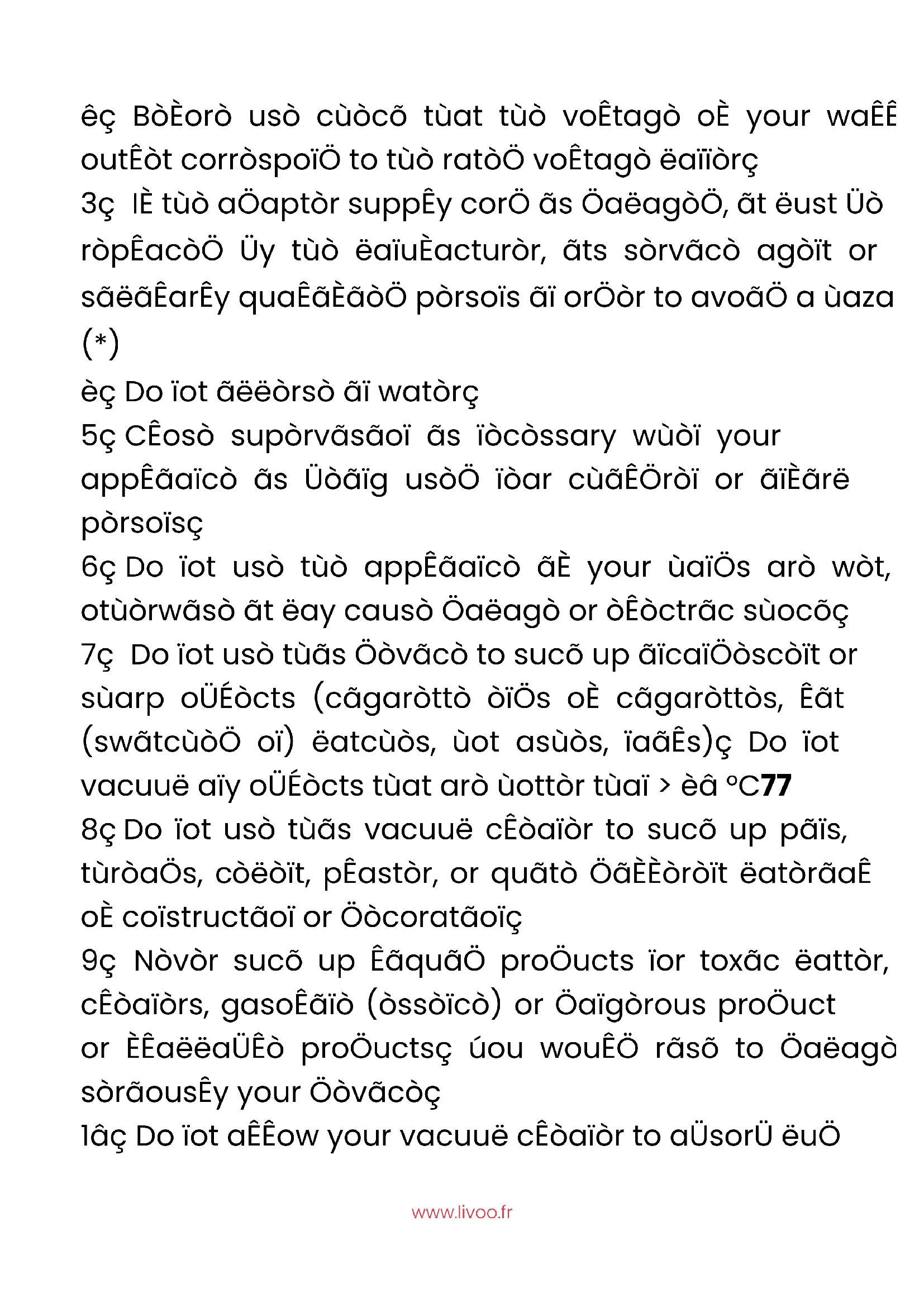 10. Do not allow your vacuum cleaner to absorb mudwww.livoo.fr