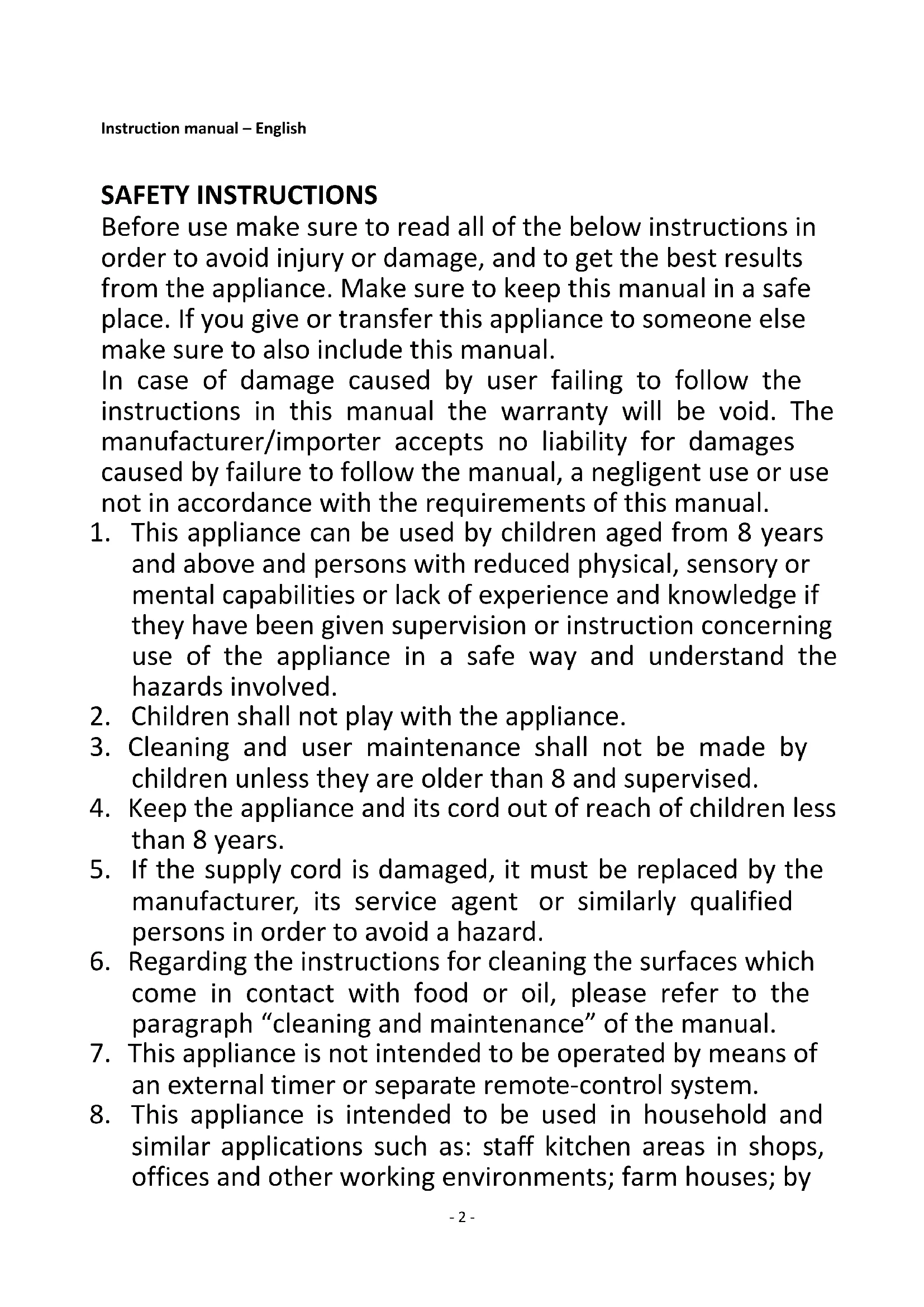 2. Children shall not play with the appliance.