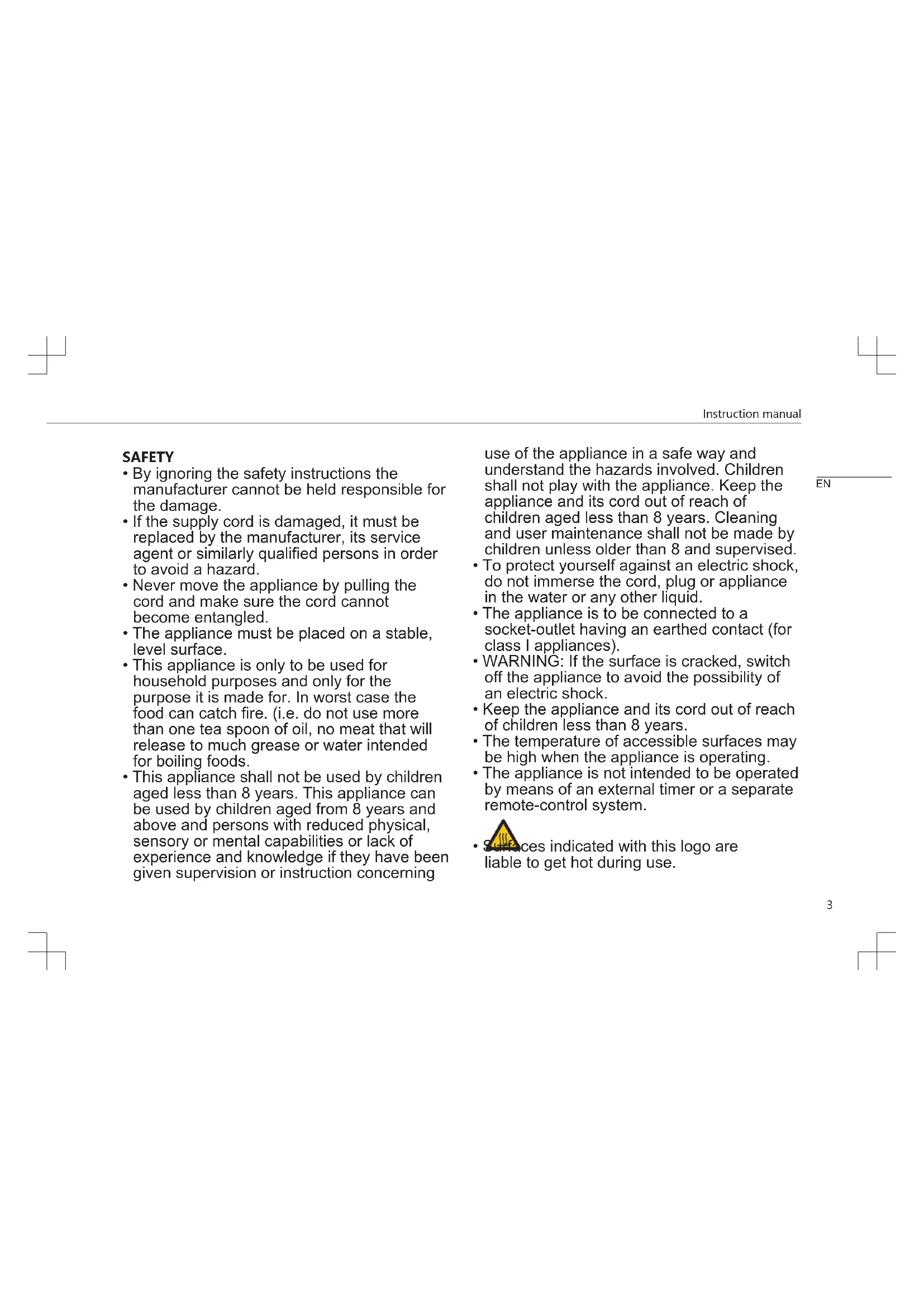 - Surfaces indicated with this logo are liable to get hot during use. ENInstruction manual