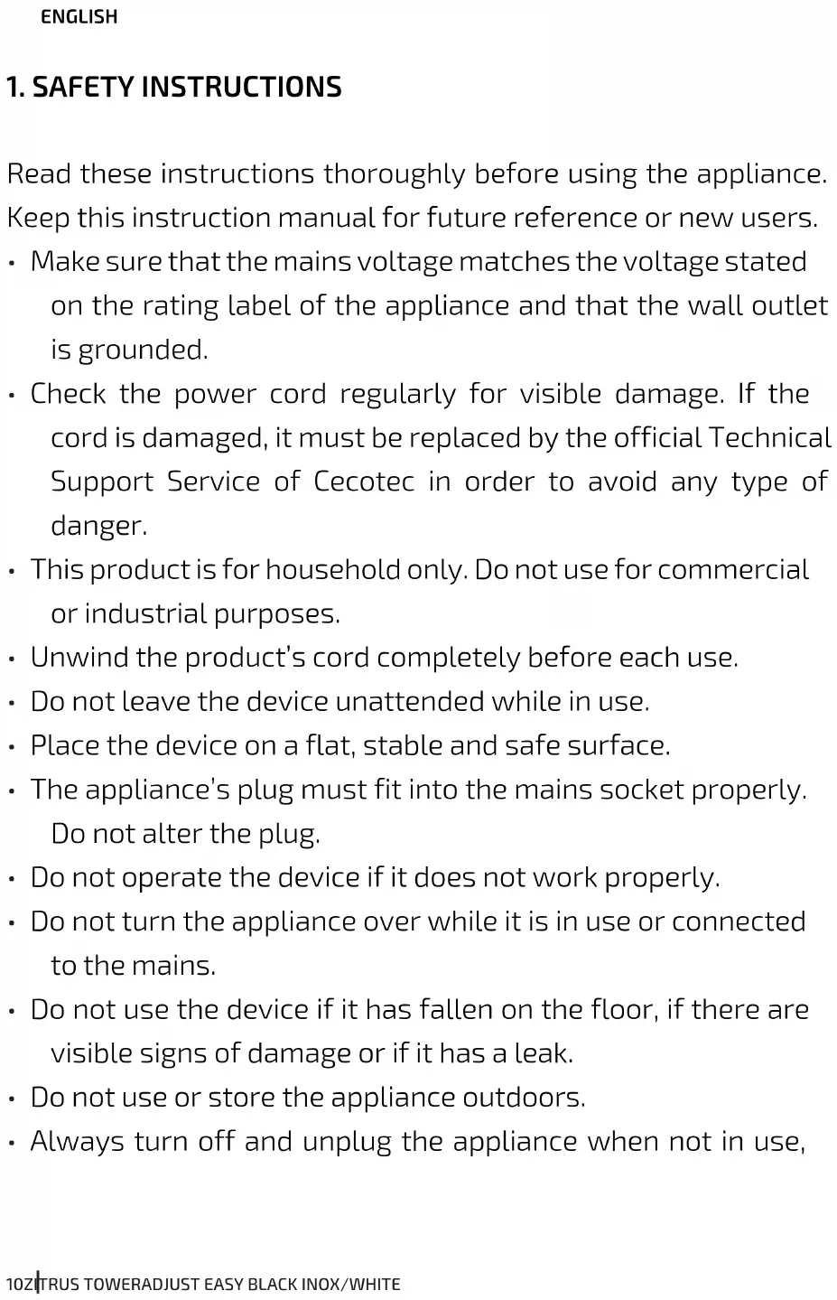 USER MANUAL Zitrus TowerAdjust Easy CECOTEC