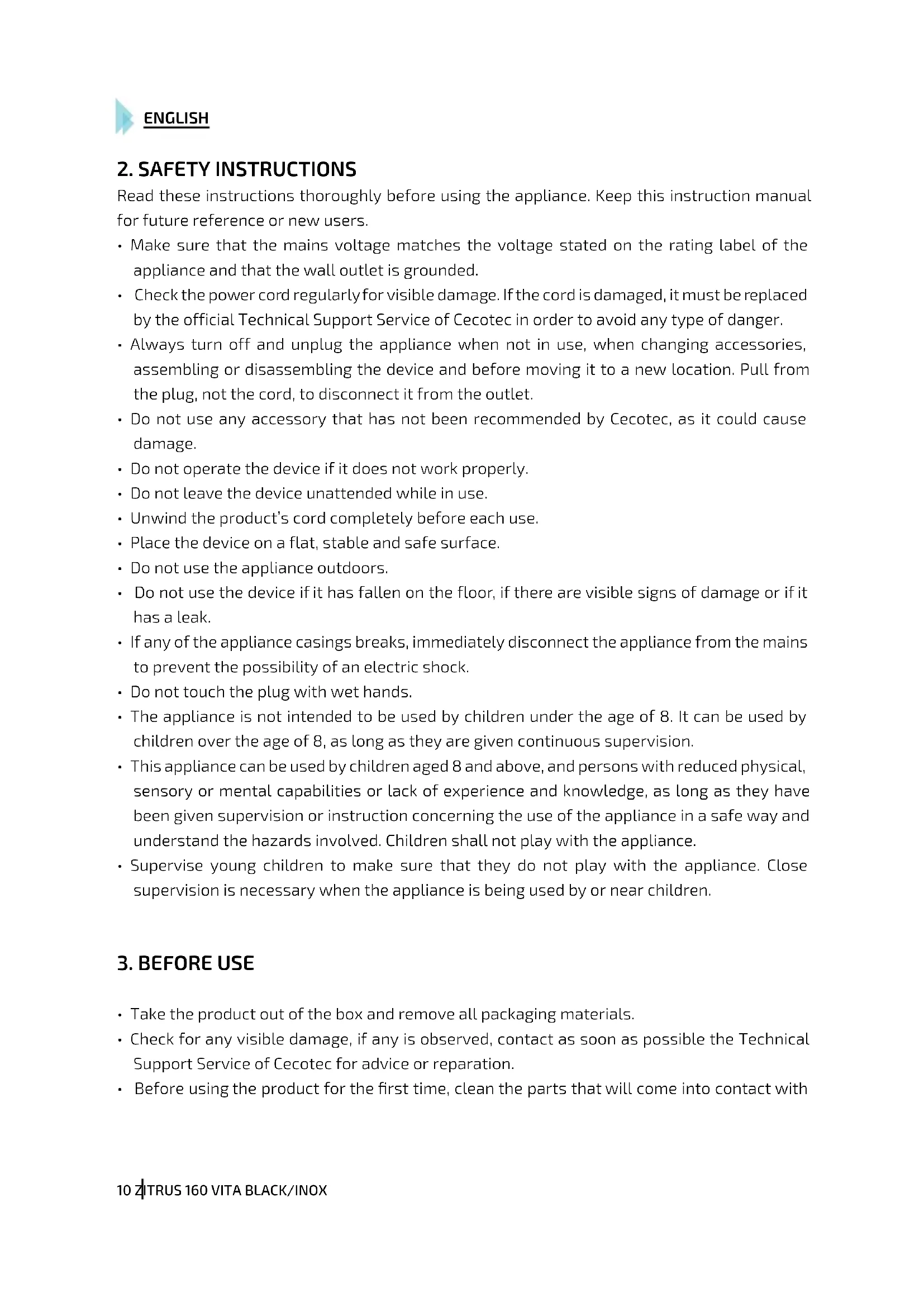 USER MANUAL Zitrus 160 Vita Inox CECOTEC