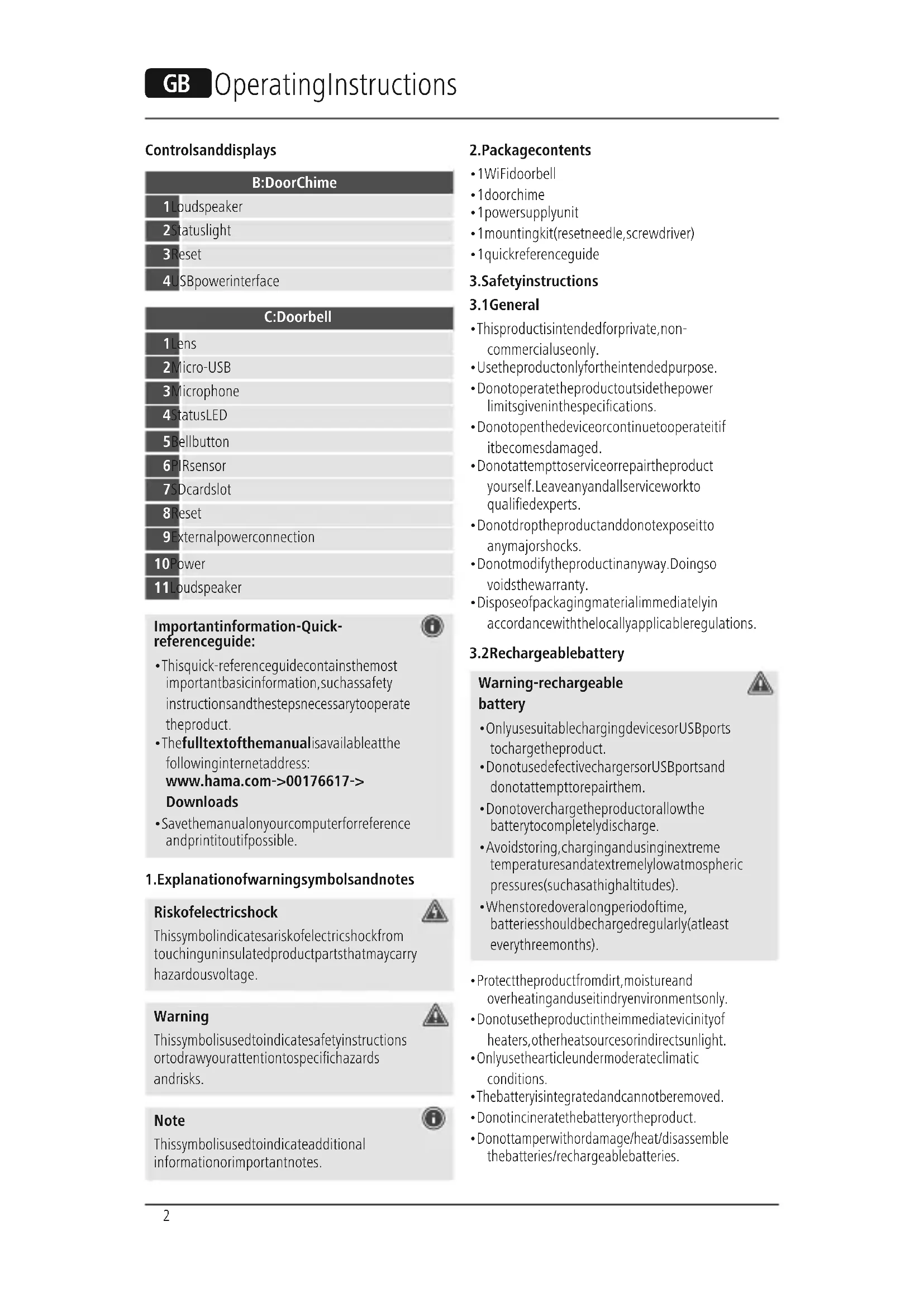 Download the instructions for your Doorbells in PDF format for free! Find your manual 176617 - HAMA and take your electronic device back in hand. On this page are published all the documents necessary for the use of your device. 176617 by HAMA.