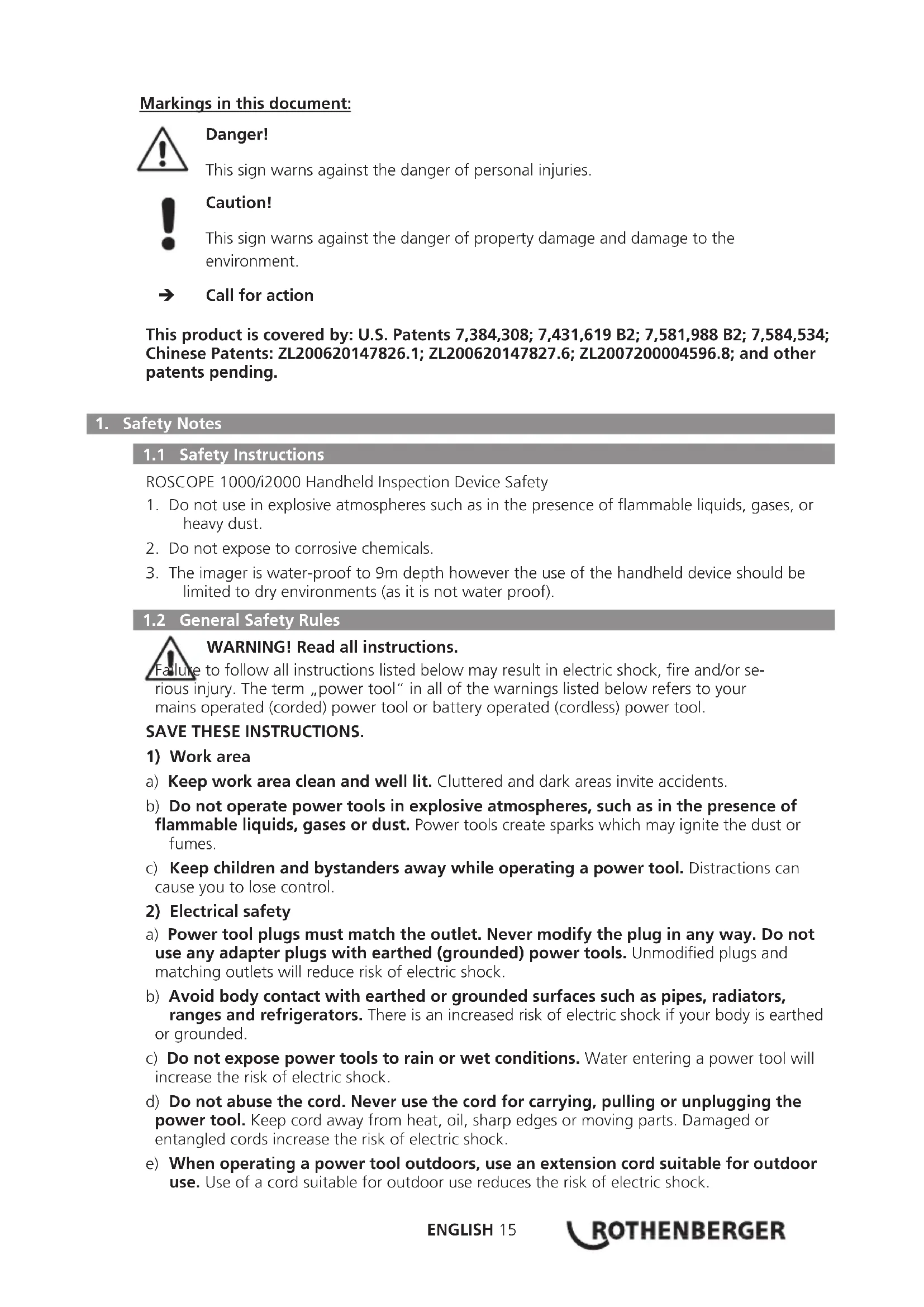 ROSCOPE 1000/i2000 Handheld Inspection Device Safety