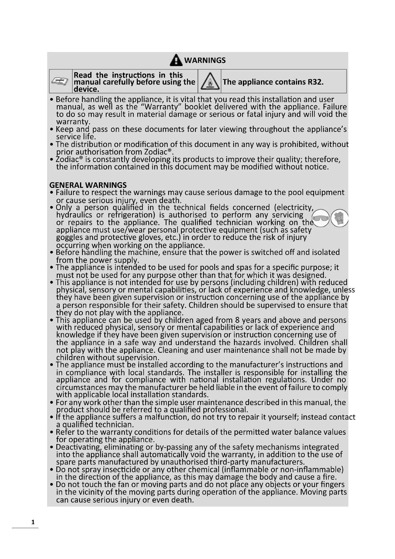 - Zodiac® is constantly developing its products to improve their quality; therefore, the informaon contained in this document may be modied without noce. GENERAL WARNINGS