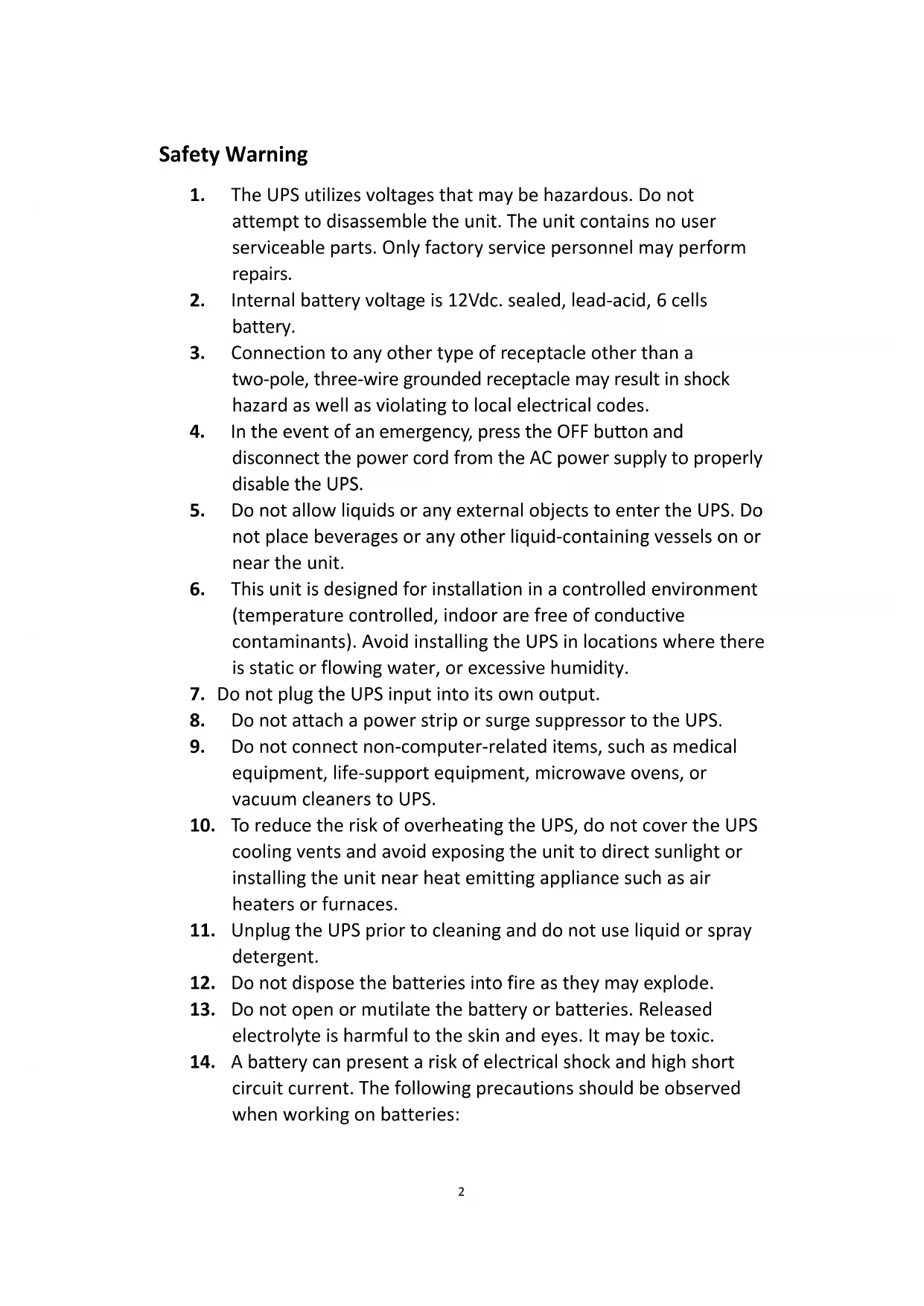 1. The UPS utilizes voltages that may be hazardous. Do not