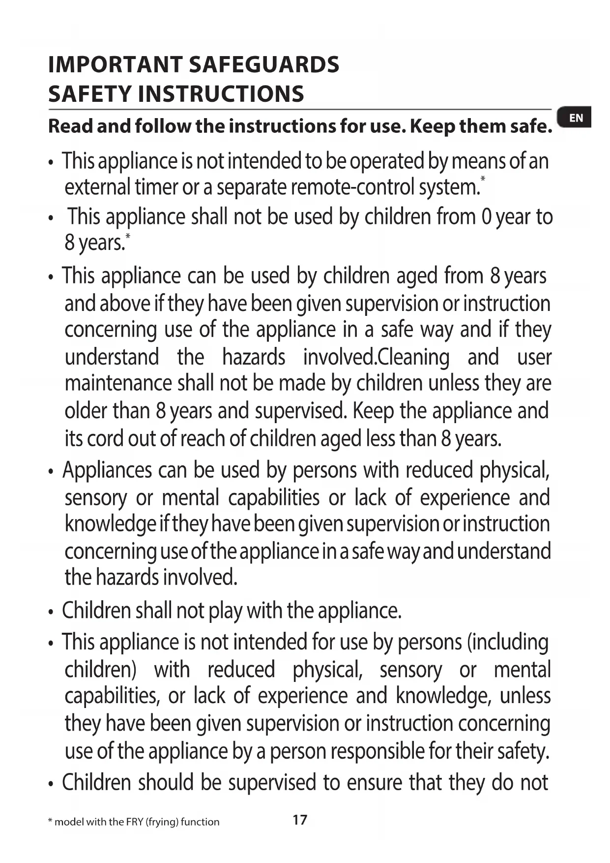 - model with the FRY (frying) function18 play with the appliance.