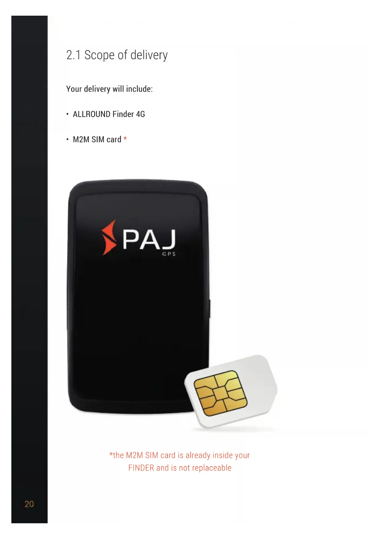 - M2M SIM card * *the M2M SIM card is already inside your FINDER and is not replaceable1.4 Activation