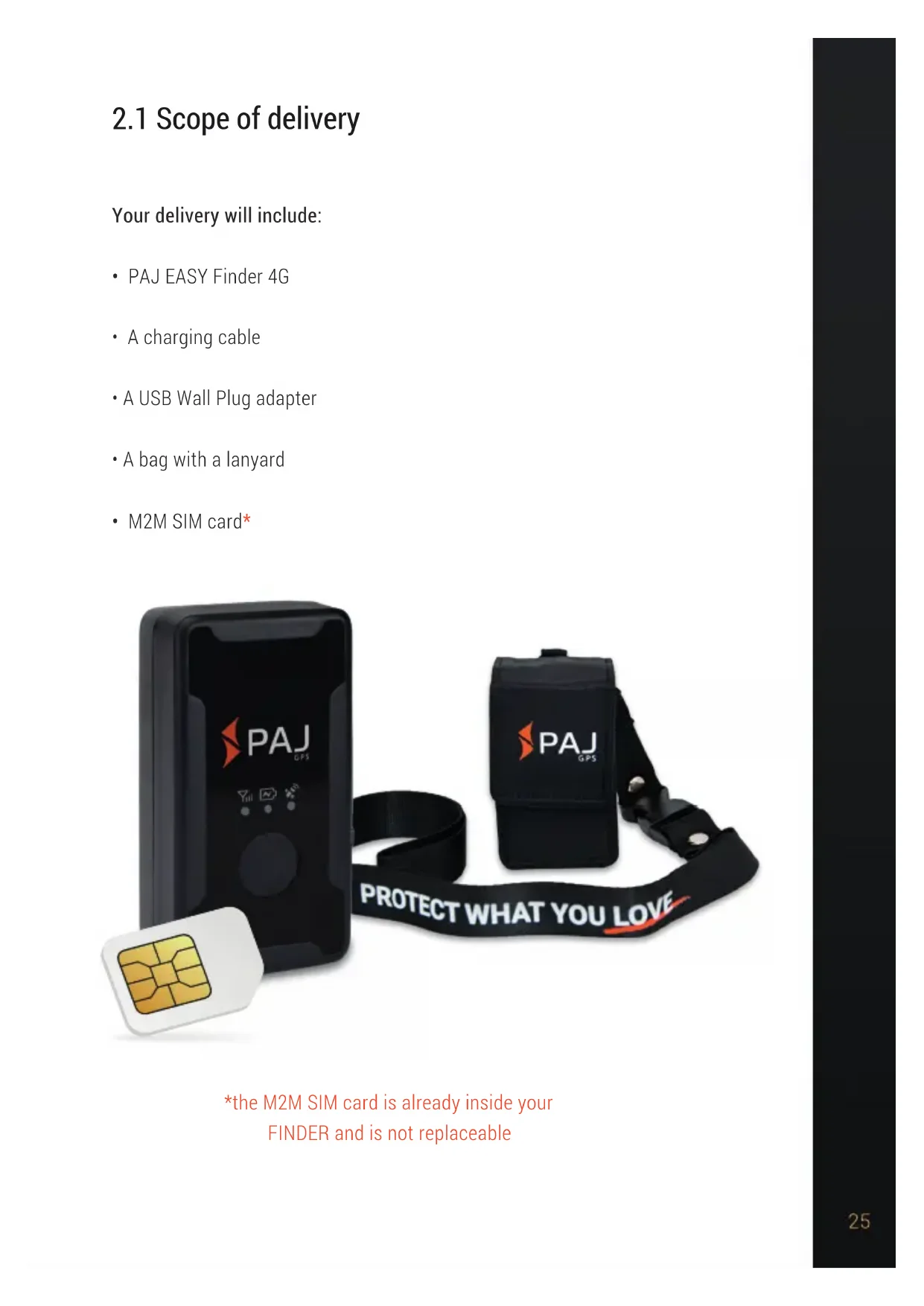 - M2M SIM card* *the M2M SIM card is already inside your FINDER and is not replaceable26