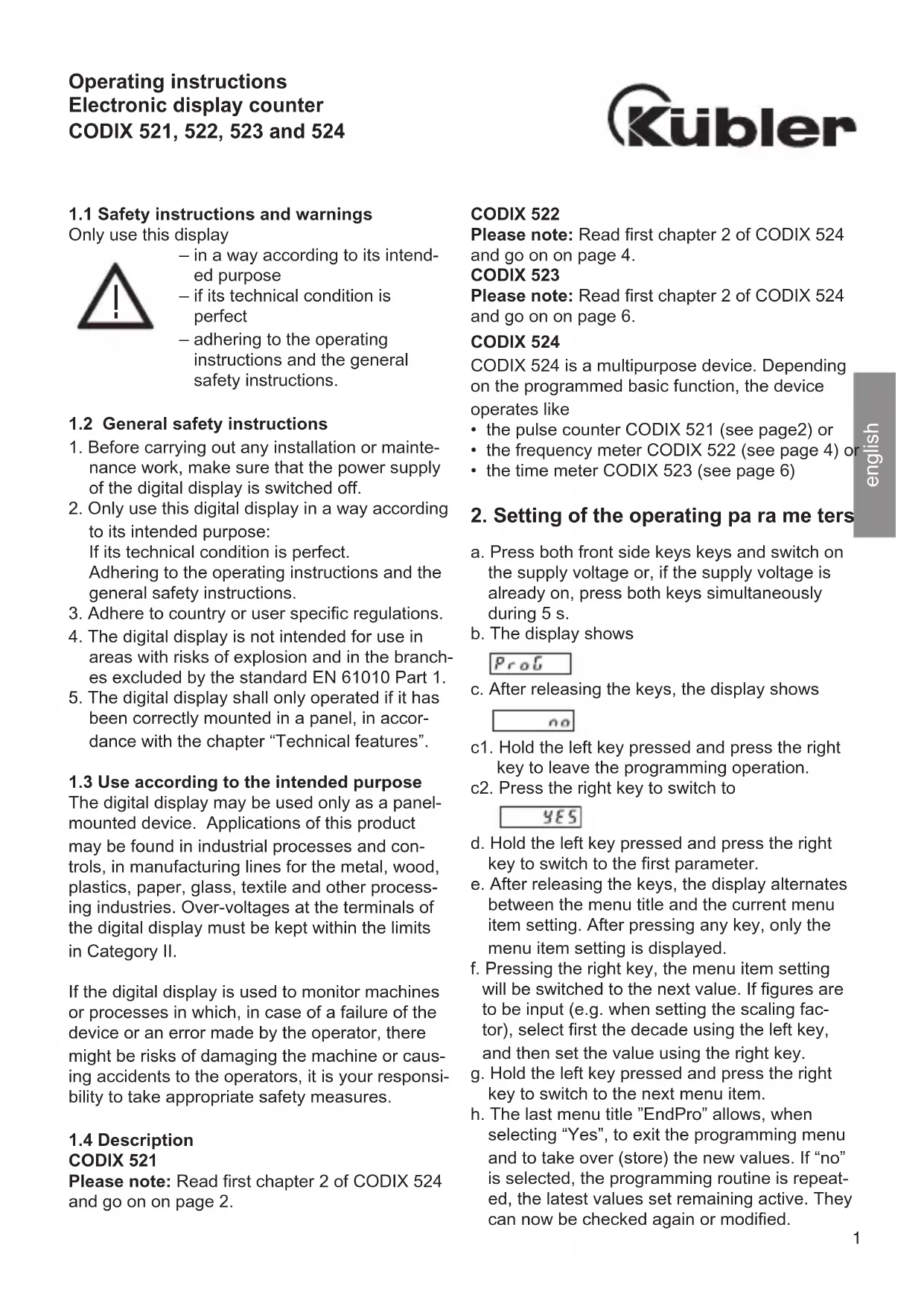 Download the instructions for your Measuring equipment in PDF format for free! Find your manual CODIX 521 - Kübler and take your electronic device back in hand. On this page are published all the documents necessary for the use of your device. CODIX 521 by Kübler.