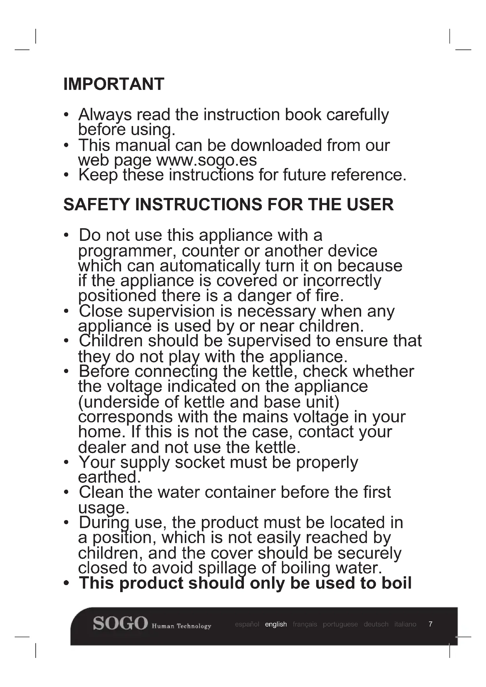 SS7760 - Kettle Sogo - Free user manual and instructions