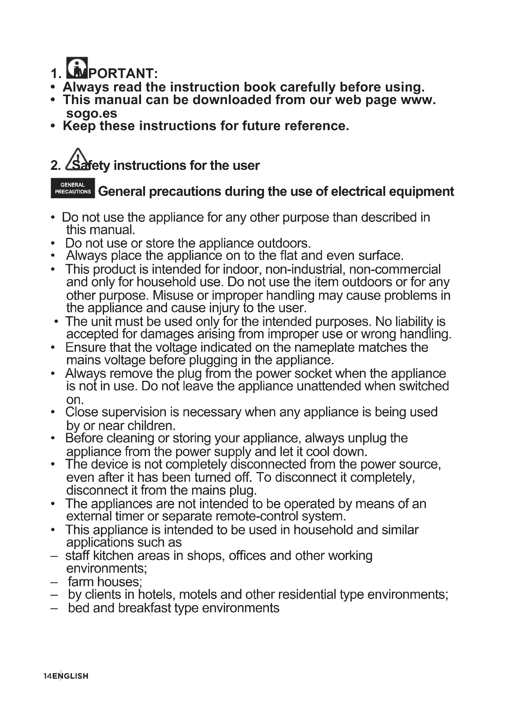 - This product is intended for indoor, non-industrial, non-commercial and only for household use. Do not use the item outdoors or for any other purpose. Misuse or improper handling may cause problems in the appliance and cause injury to the user.