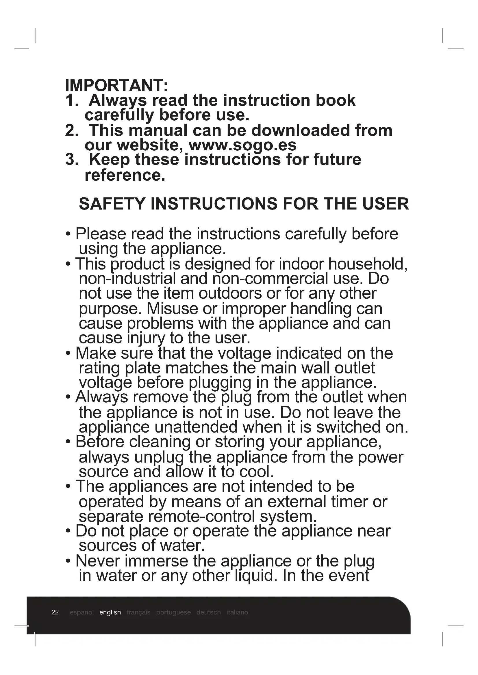 - Do not use the appliance for any other purpose than described in this manual.25 español english français portuguese deutsch italiano