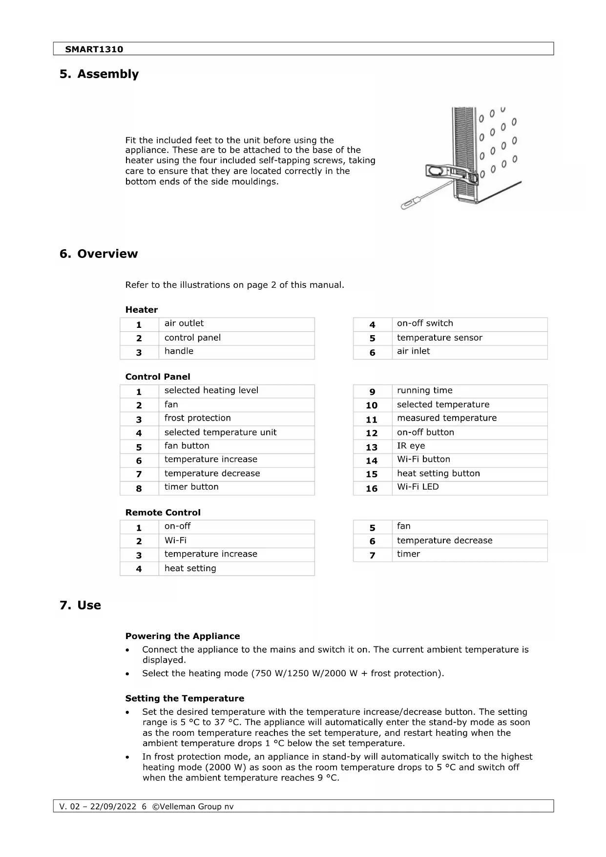 - In frost protection mode, an appliance in stand-by will automatically switch to the highest heating mode (2000 W) as soon as the room temperature drops to 5 °C and switch off when the ambient temperature reaches 9 °C.SMART1310