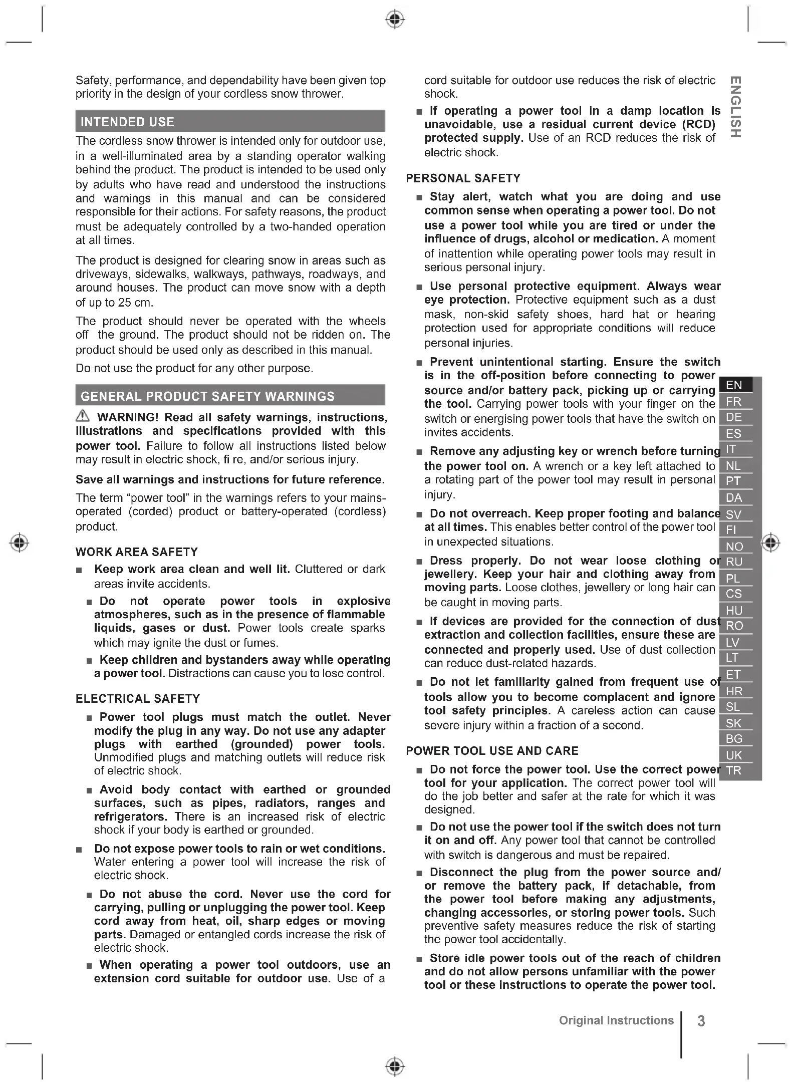 CORDLESS SNOW THROWER SAFETY