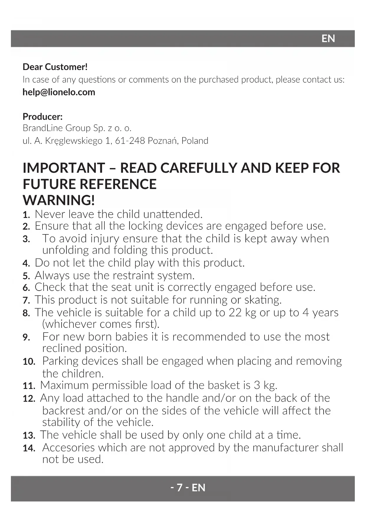 Julie One - Stroller Lionelo - Free user manual and instructions