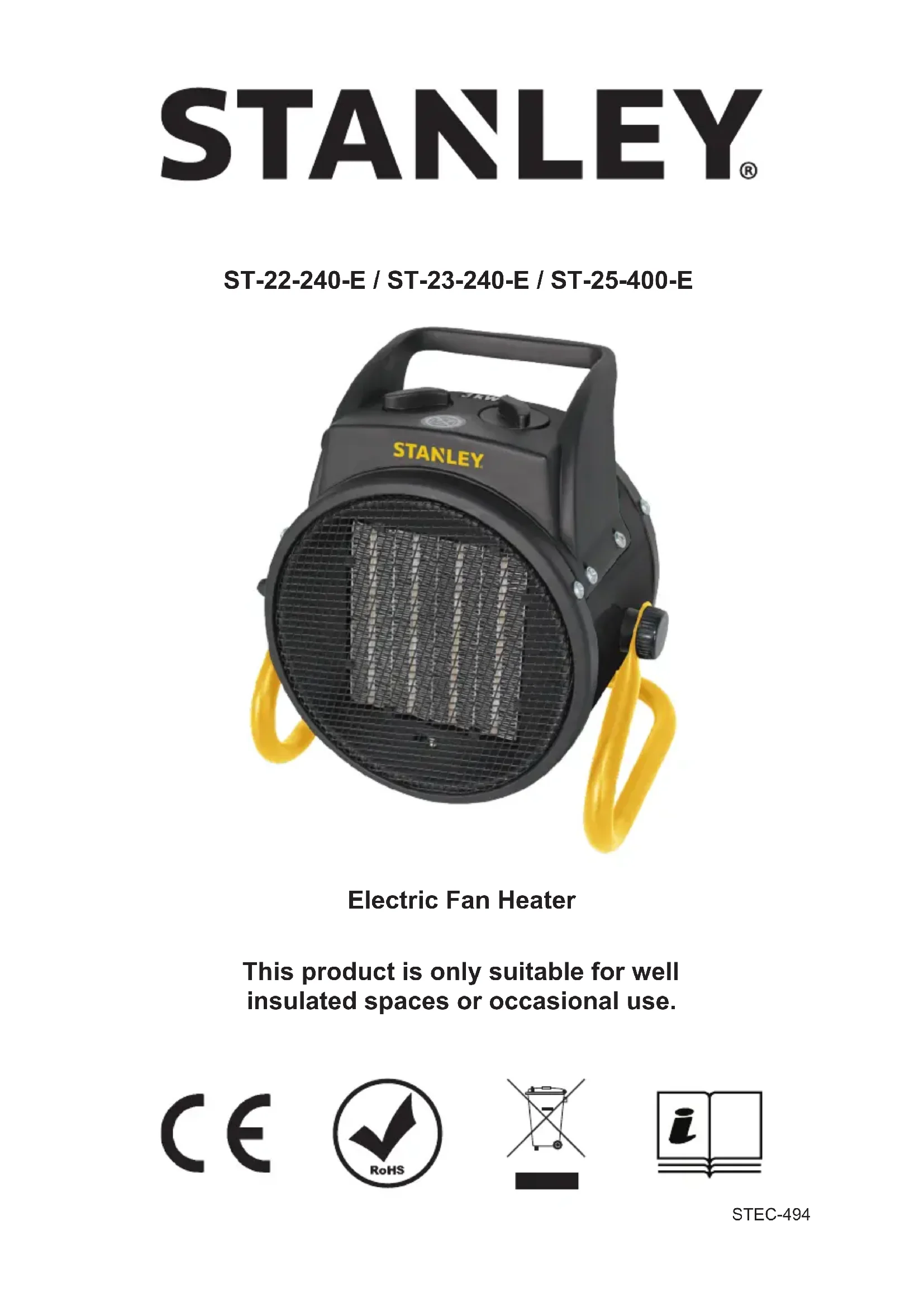 REPElectric Fan Heater This product is only suitable for well insulated spaces or occasional use. ST-22-240-E / ST-23-240-E / ST-25-400-E STEC-494© 2018, Obelis S.A Registered Address: Bd. Général Wahis, 53 1030 Brussels, Belgium