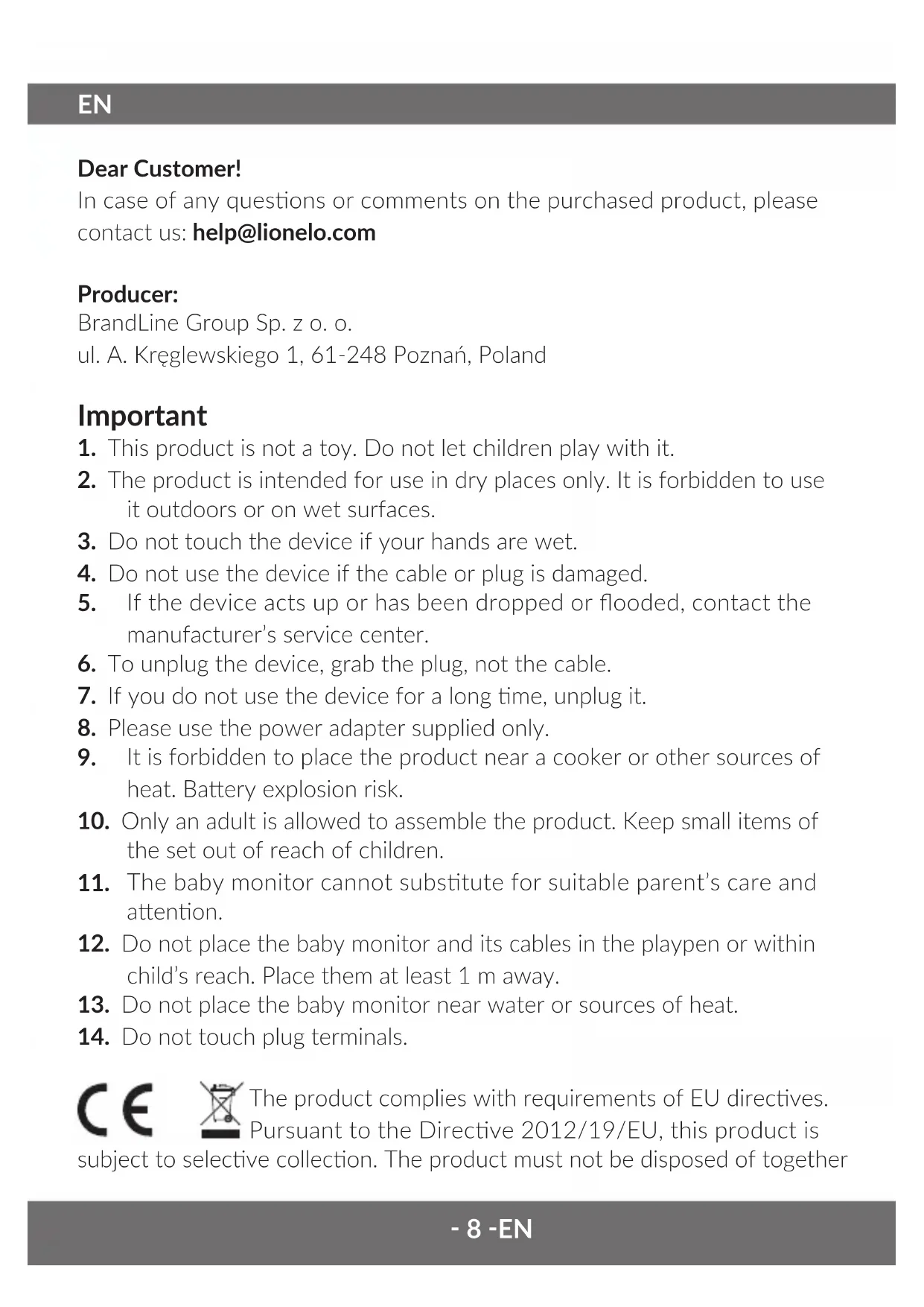 USER MANUAL Babyline 8.2 Lionelo