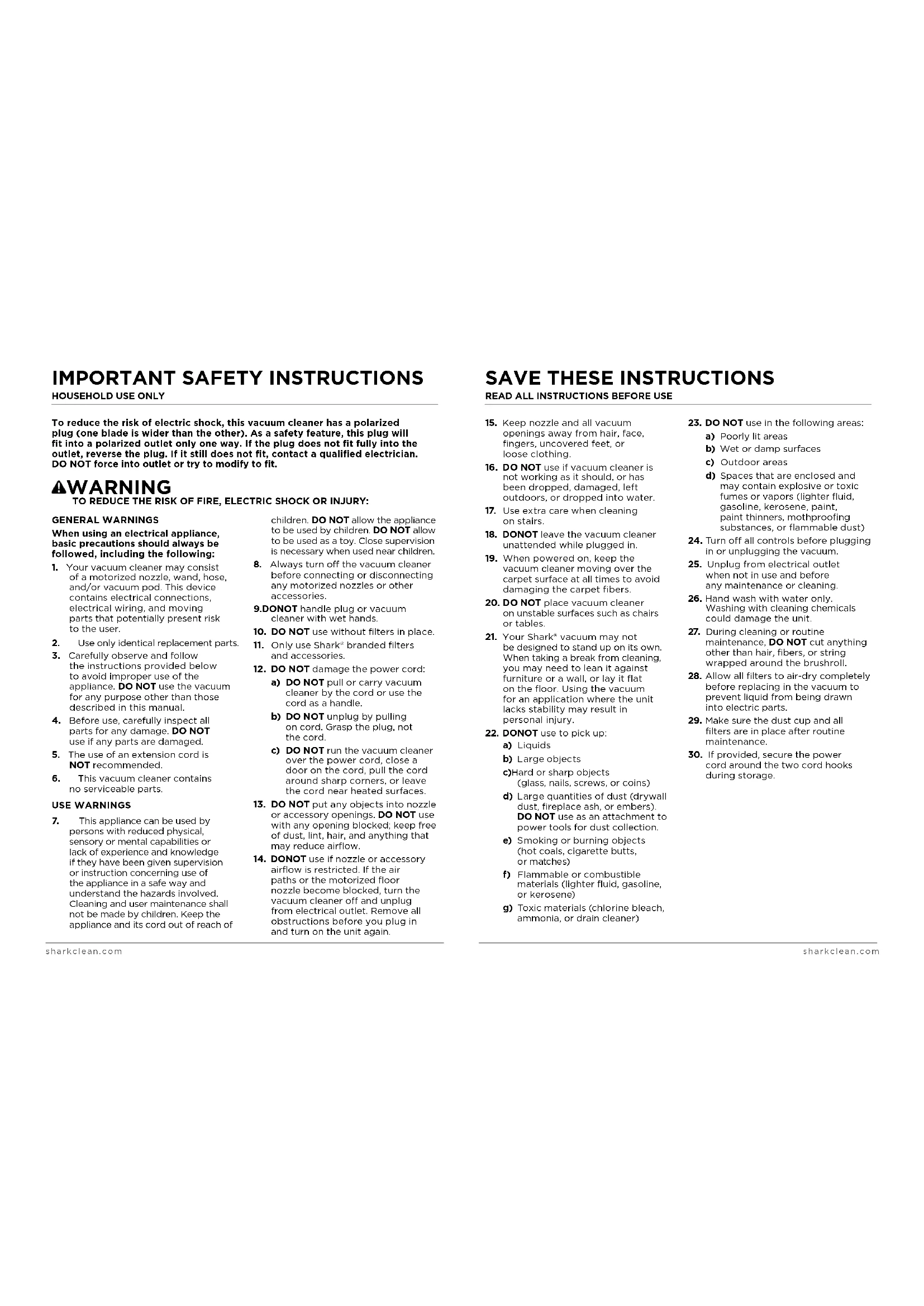 regular maintenance and/or replacement to ensure the proper functioning of your unit, are not covered by this warranty. Replacement parts are available for purchase at sharkaccessories.com.