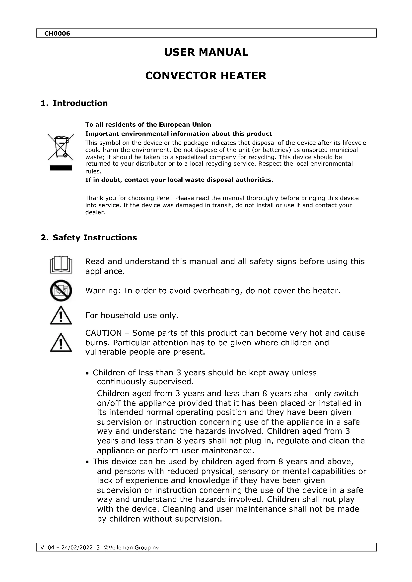 Download the instructions for your Heating in PDF format for free! Find your manual CH0006 - Perel and take your electronic device back in hand. On this page are published all the documents necessary for the use of your device. CH0006 by Perel.