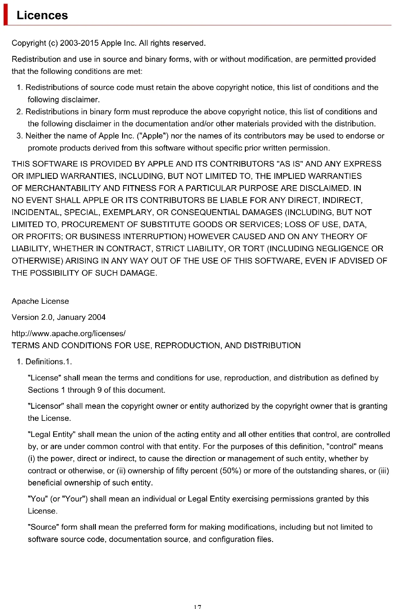 promote products derived from this software without specific prior written permission. THIS SOFTWARE IS PROVIDED BY APPLE AND ITS CONTRIBUTORS "AS IS" AND ANY EXPRESS OR IMPLIED WARRANTIES, INCLUDING, BUT NOT LIMITED TO, THE IMPLIED WARRANTIES OF MERCHANTABILITY AND FITNESS FOR A PARTICULAR PURPOSE ARE DISCLAIMED. IN NO EVENT SHALL APPLE OR ITS CONTRIBUTORS BE LIABLE FOR ANY DIRECT, INDIRECT, INCIDENTAL, SPECIAL, EXEMPLARY, OR CONSEQUENTIAL DAMAGES (INCLUDING, BUT NOT LIMITED TO, PROCUREMENT OF SUBSTITUTE GOODS OR SERVICES; LOSS OF USE, DATA, OR PROFITS; OR BUSINESS INTERRUPTION) HOWEVER CAUSED AND ON ANY THEORY OF LIABILITY, WHETHER IN CONTRACT, STRICT LIABILITY, OR TORT (INCLUDING NEGLIGENCE OR OTHERWISE) ARISING IN ANY WAY OUT OF THE USE OF THIS SOFTWARE, EVEN IF ADVISED OF THE POSSIBILITY OF SUCH DAMAGE. Apache License Version 2.0, January 2004 http://www.apache.org/licenses/ TERMS AND CONDITIONS FOR USE, REPRODUCTION, AND DISTRIBUTION