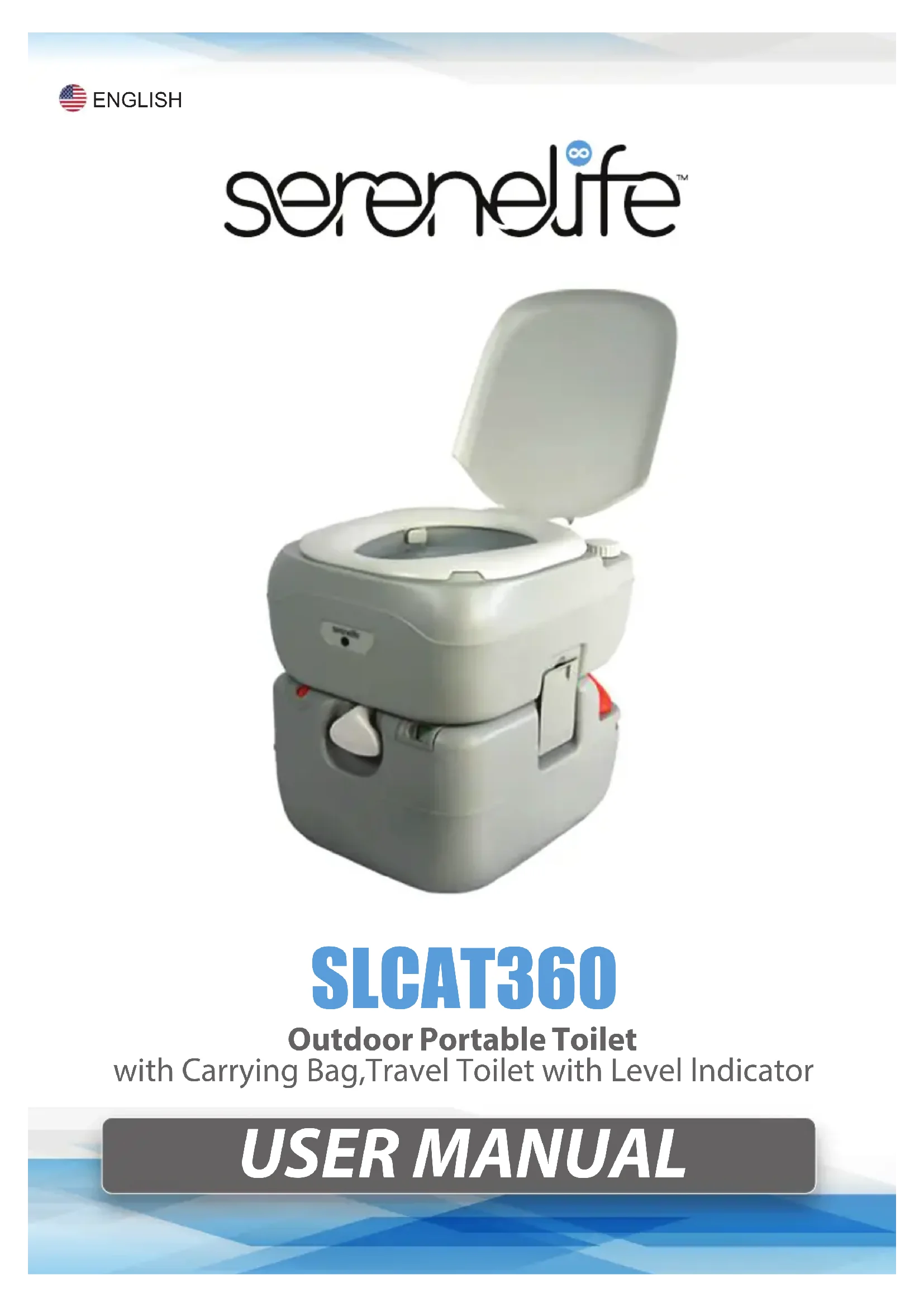 USER MANUAL ENGLISH Outdoor Portable Toilet with Carrying Bag,Travel Toilet with Level lndicator SLCAT3602 www.serenelifehome.com Introduction The portable toilet provides simple operation and convenient disposal of waste. Before using your portable toilet, we recommend that you read this manual completely. Become familiar with your portable toilet and its components parts. As with any quality product, proper use and operation eliminates unnecessary maintenance. Features: