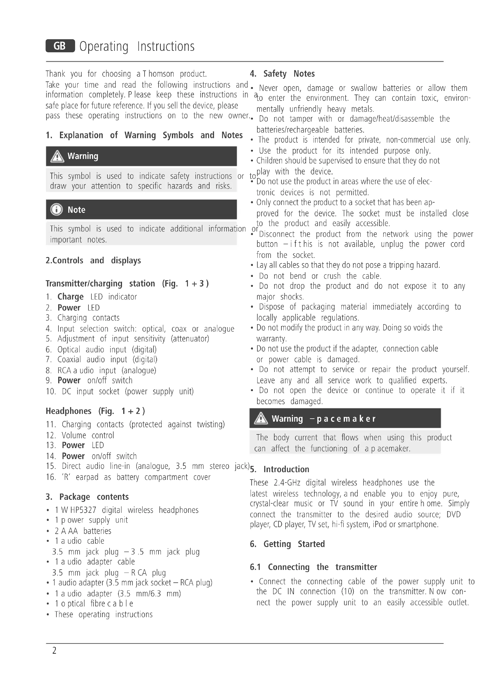USER MANUAL WHP5327 THOMSON