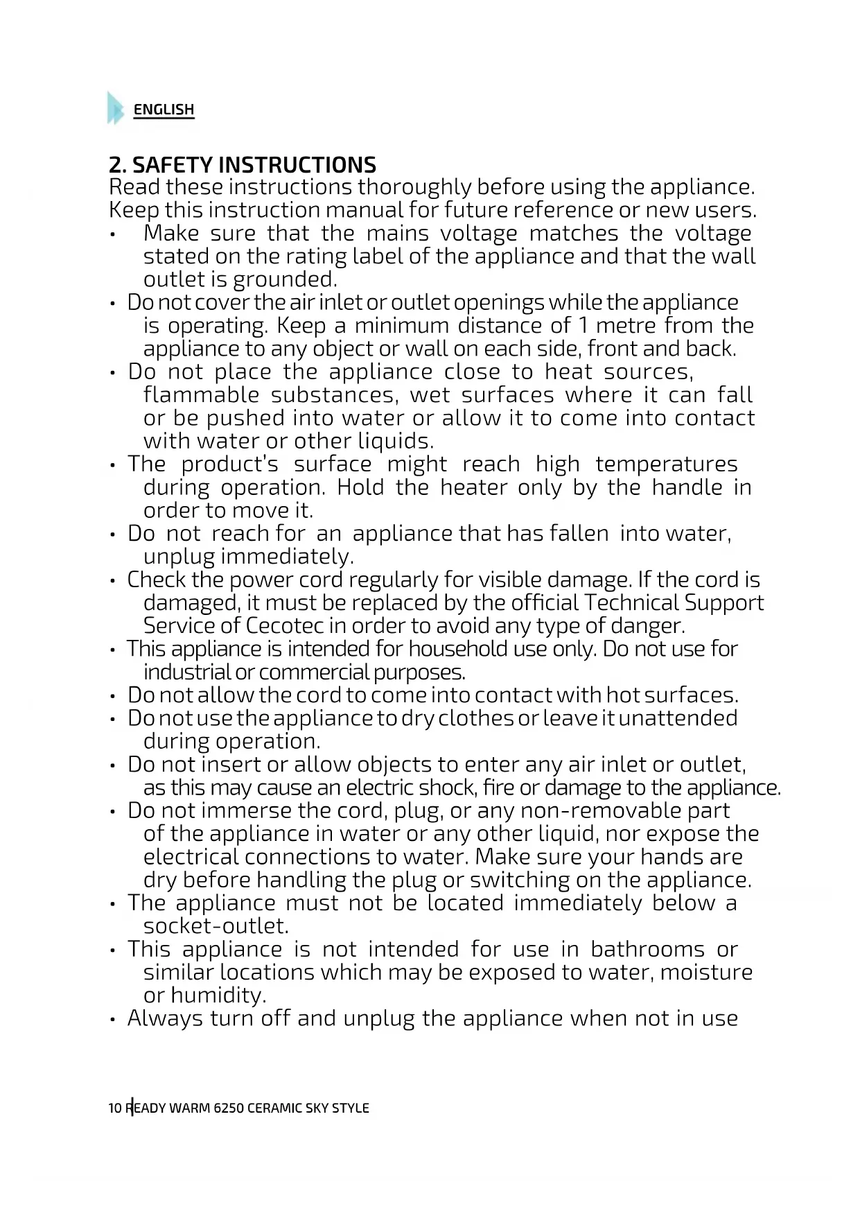 USER MANUAL Ready Warm 6200 Ceramic Sky CECOTEC