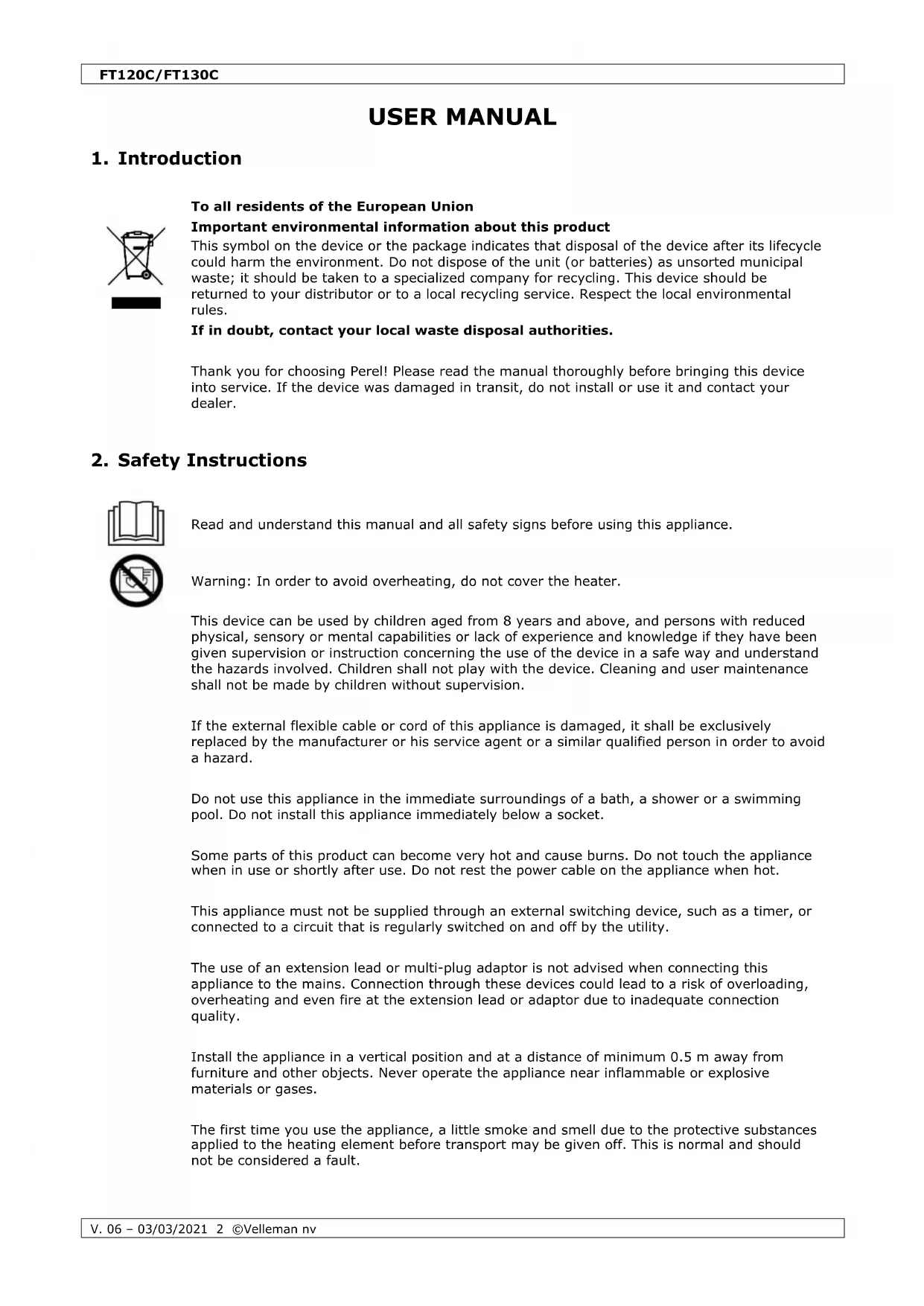 Download the instructions for your Heating in PDF format for free! Find your manual FT130C - Perel and take your electronic device back in hand. On this page are published all the documents necessary for the use of your device. FT130C by Perel.